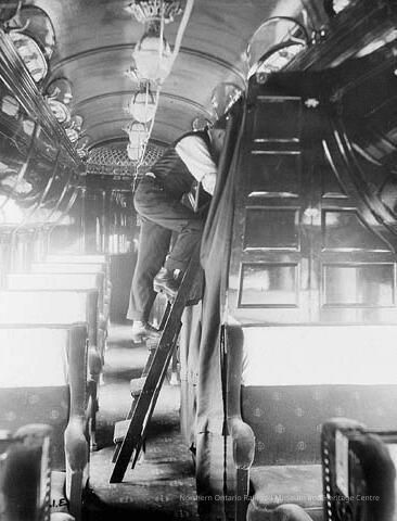 Photograph, Preparing berths on a Canadian Northern Railway sleeping car, 1915.Collection