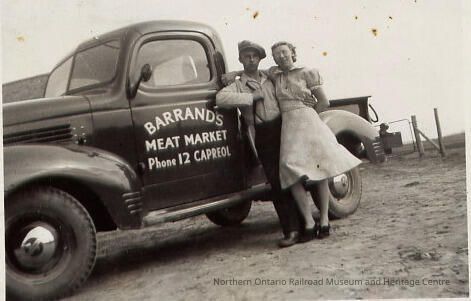 Photograph, Russell and Agnes Barrand, Barrand's Meat Market Truck, Capreol, Ontario.Description