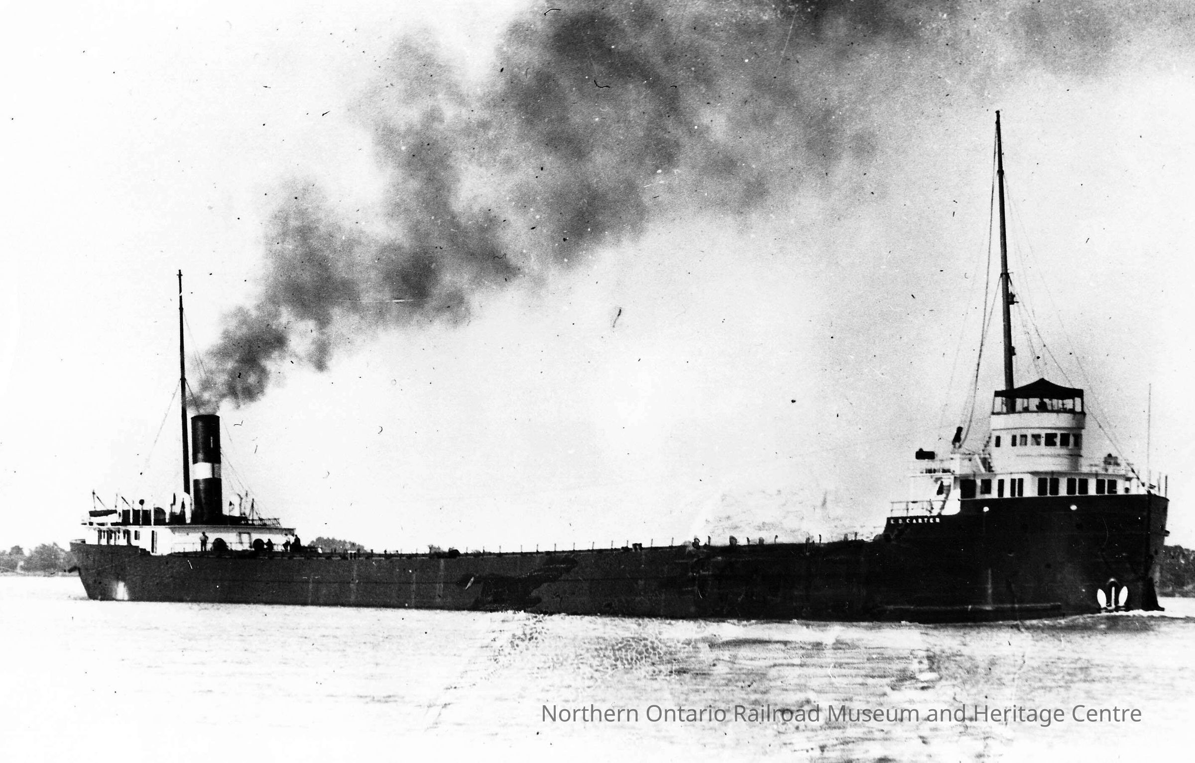 Black and white photograph of the steamship E.B. (?) Carter. Negative by Rev. Edward J. Dowling.Collection
