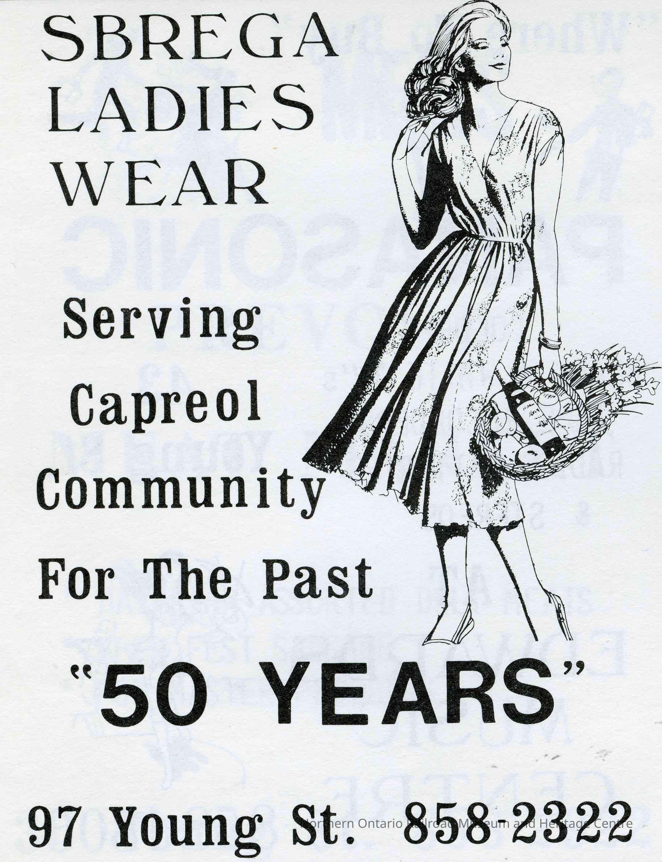 Photograph, Sbrega Ladies Wear, Capreol, Ontario.Collection