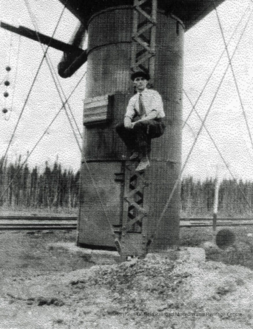 Black and White- Bob Stevenson [?] sitting in Sellwood; CN water tankCollection