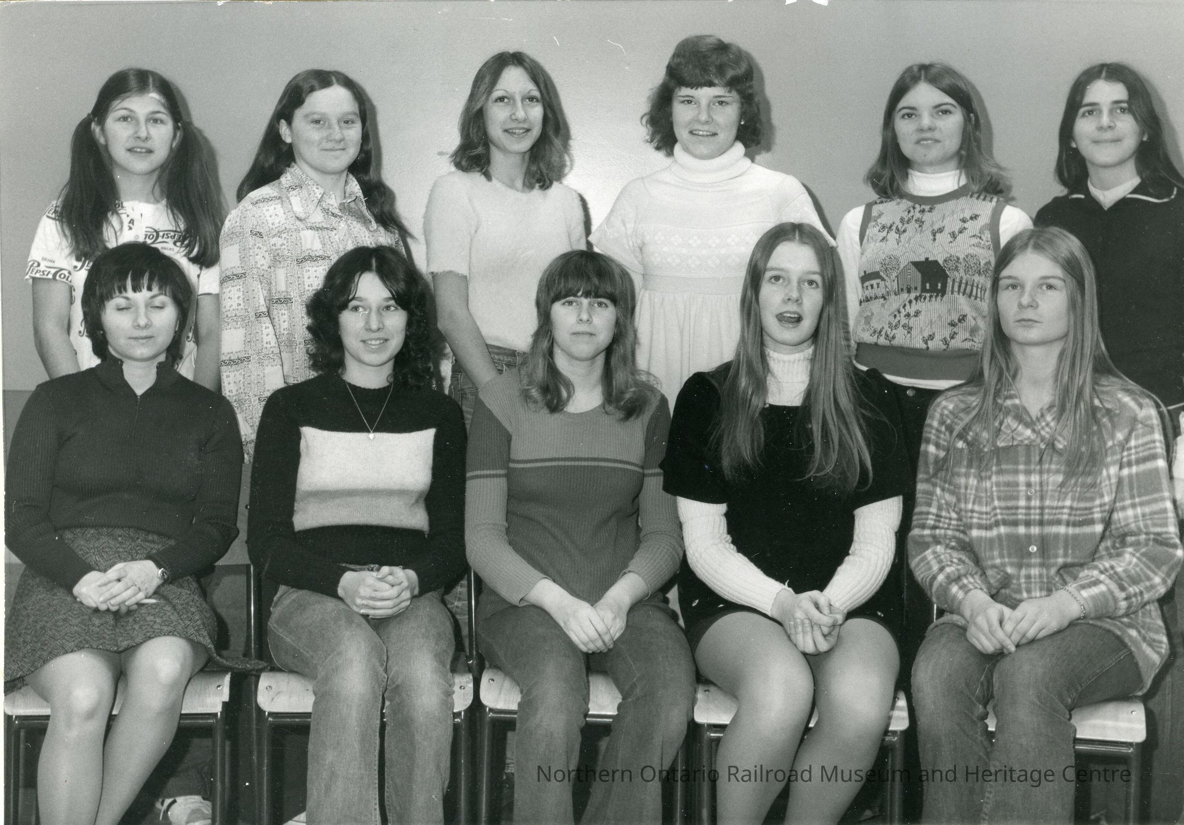 Photograph, Track and Field 1971-1972, Left to right, back row, Laurie Tagliabracci, Cathy Hanzel, Sandra Amiro, Karen Martin, Sharon Scott, Isabelle Prevost, Front Row, Mrs. N Dozzi, Jeanette Hodkinson, Lynn Sheffield, Laura Miles, Barbara Miles.Collection
