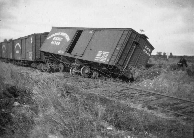 Photograph, Train accident, Derailed Canadian Northern Box Car.Collection