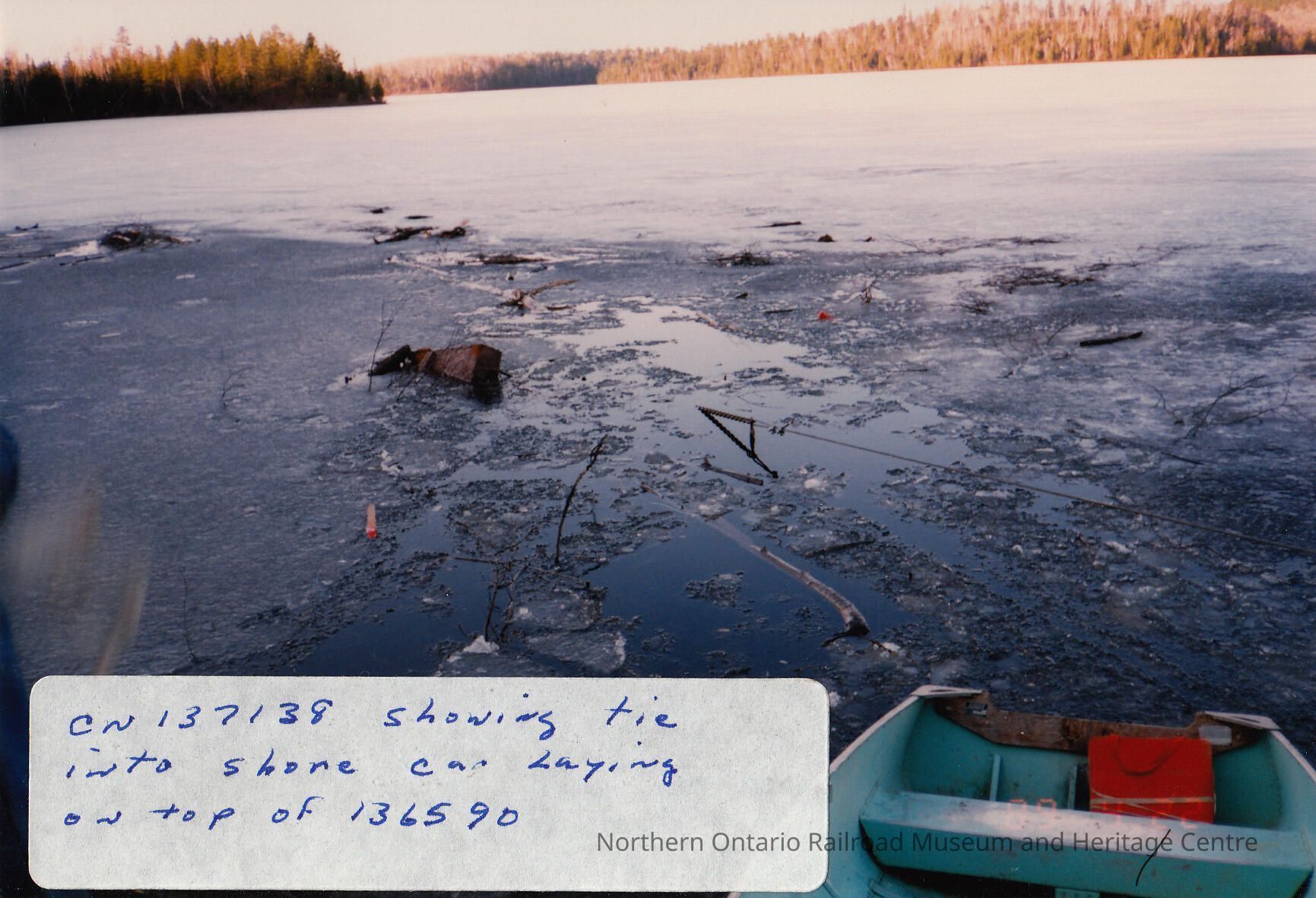 Photograph, Train Derailment, 1988, Set of 175 Pictures. "CN 137138 showing tie into shore car laying on top of 136590"Collection