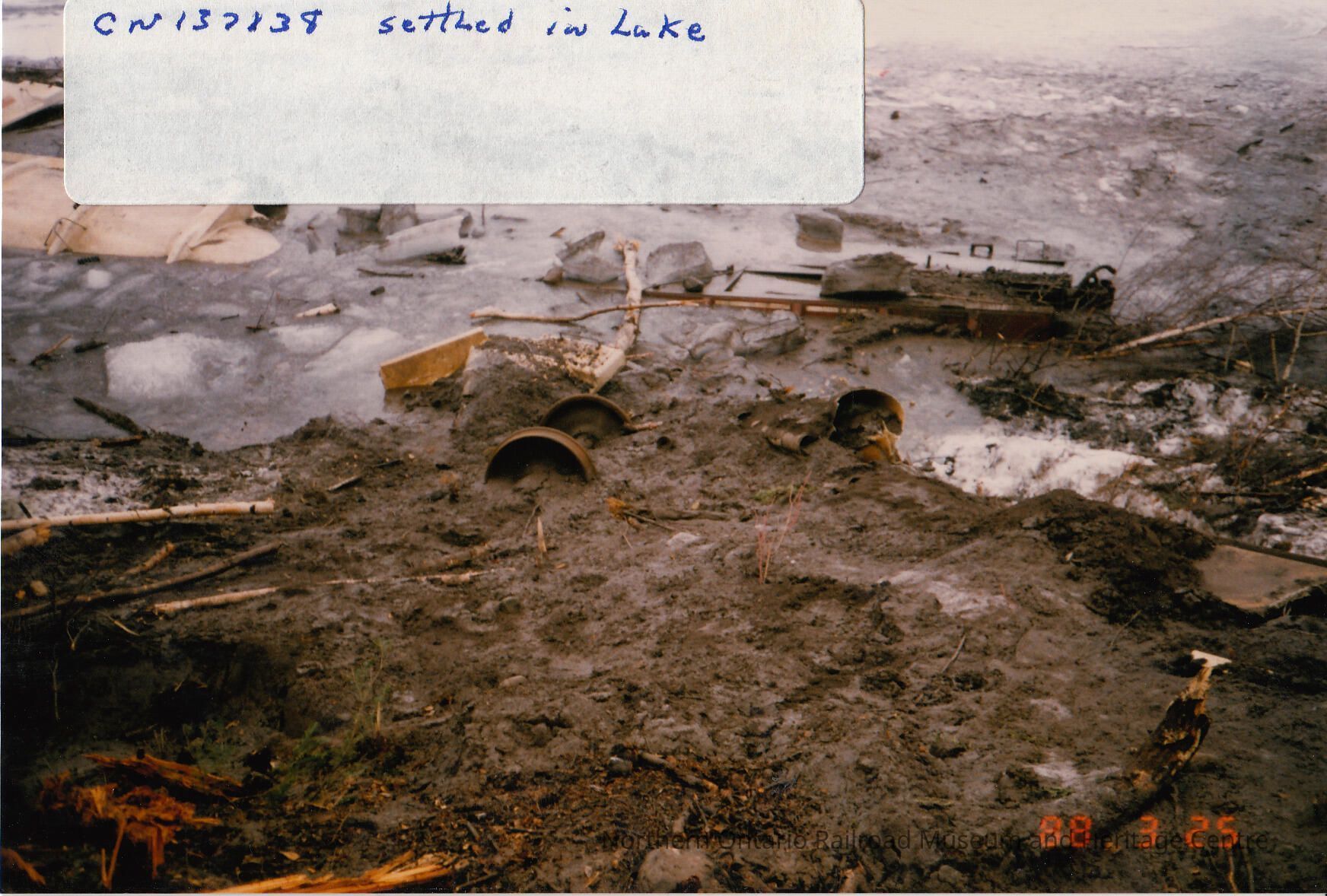 Photograph, Train Derailment, 1988, Set of 175 Pictures. "CN137138 settled in Lake"Collection