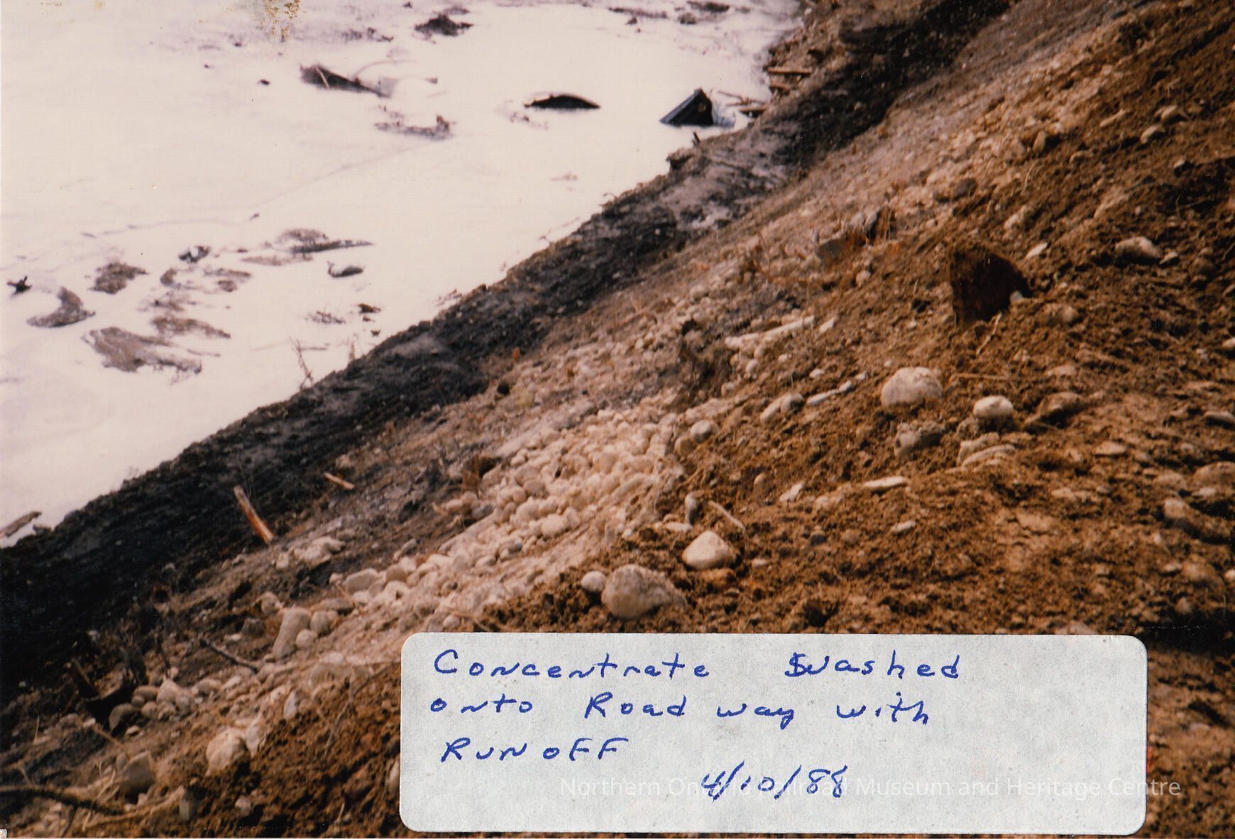 Photograph, Train Derailment, 1988, Set of 175 Pictures. "Looking down onto road way at concentrate washed onto road 4/10/88"Collection