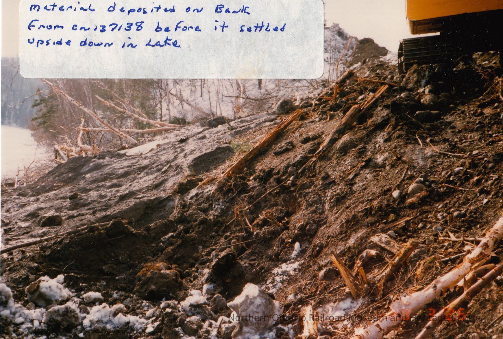 Photograph, Train Derailment, 1988, Set of 175 Pictures. "Material deposited from CN137138 before it settled upside down in lake"Collection