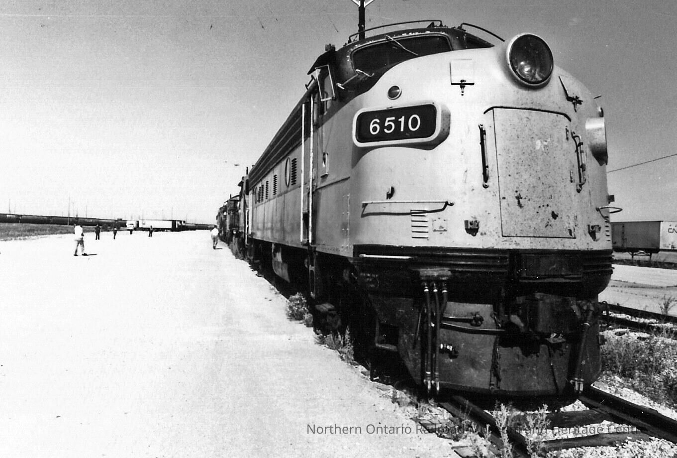 Black and white photograph of VIA Rail 6510 in Winnipeg, ManitobaCollection