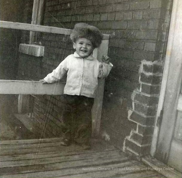 Photograph - Young Patrick Sweezey standing at the back door of his home above the Capreol fire hallEntry/Object ID