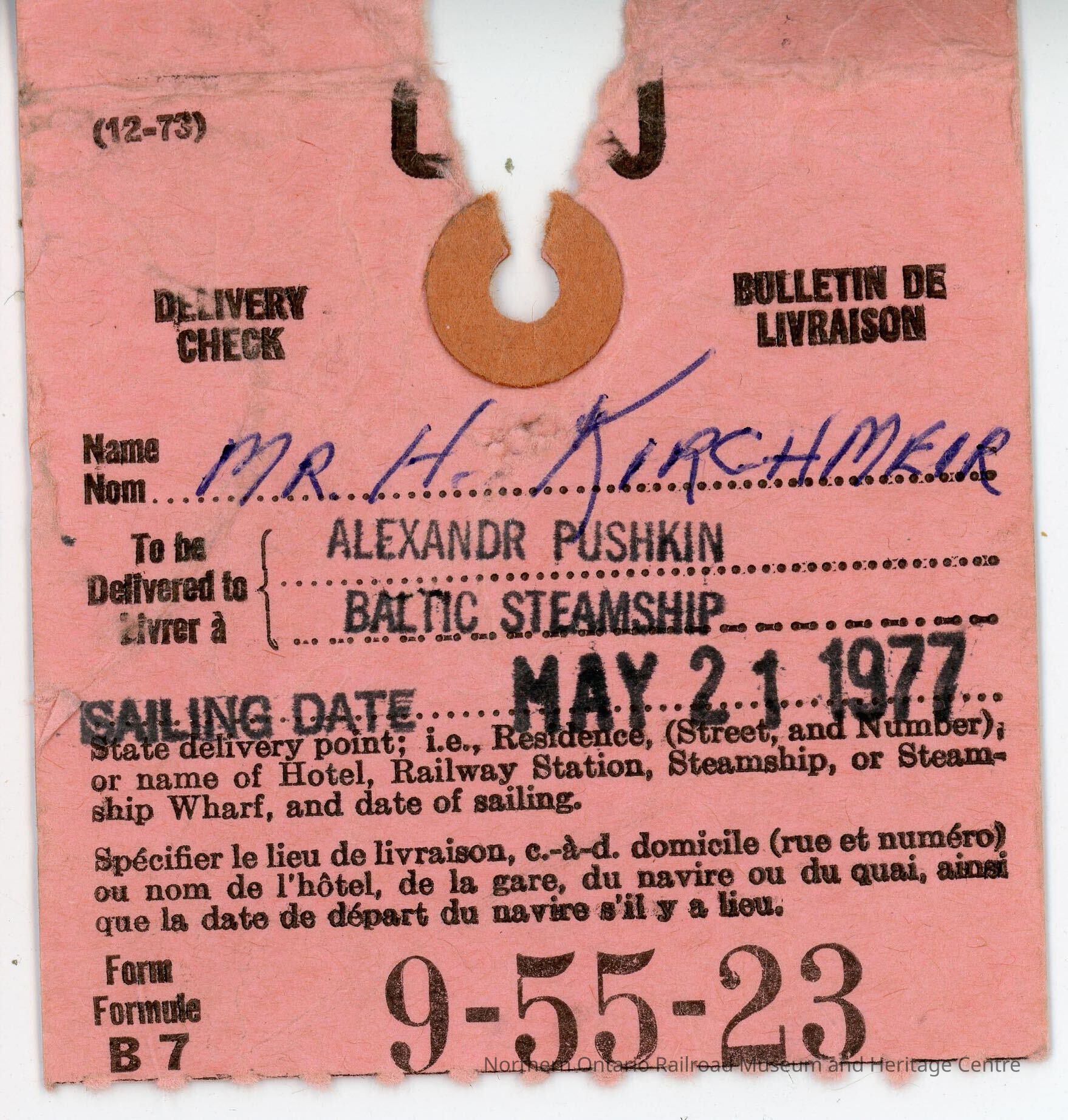 Photographic Reference, Canadian National Railways, Baggage Transfer Delivery Check, to MS Aleksandr Pushkin.Collection