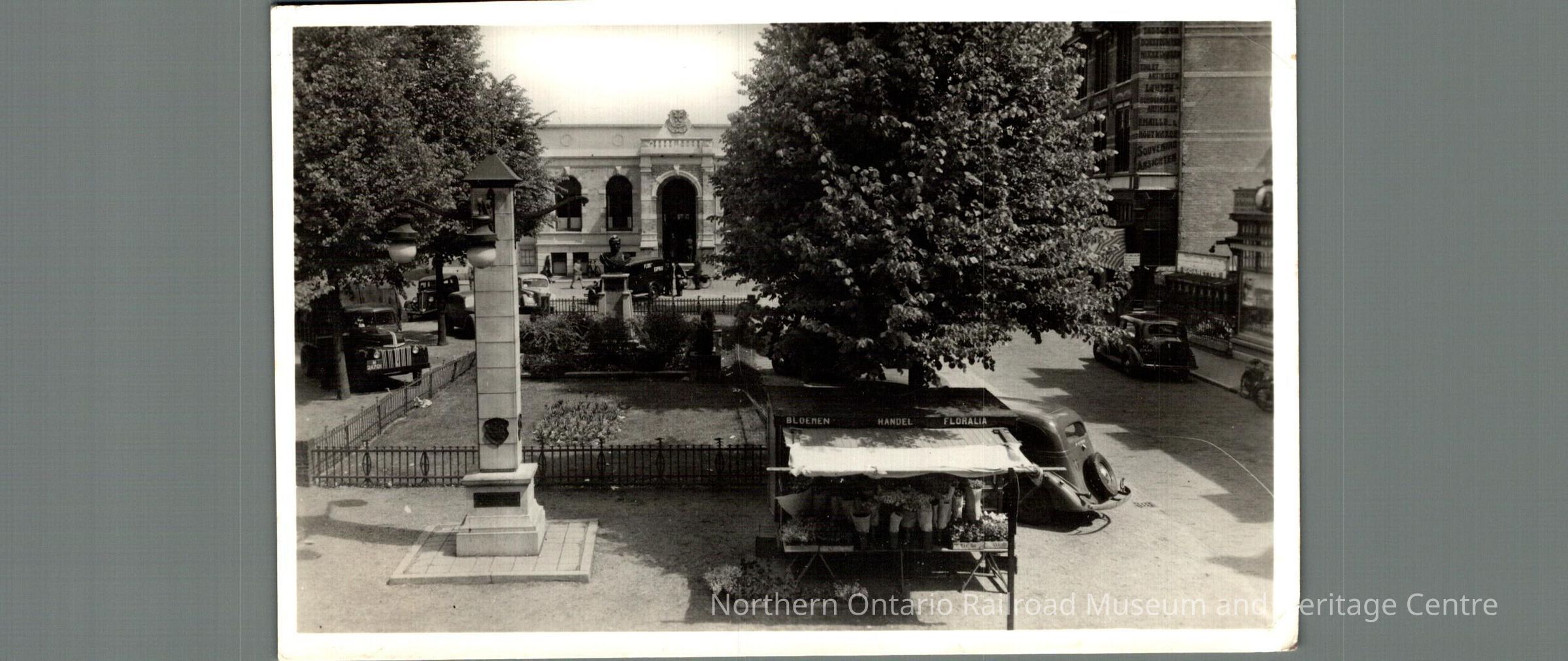 Postcard sent to Mrs M Carrise in Capreol from the Netherlands in 1946. The front features an image of the Raadhaus met stanabeeld Konig Willem IContext