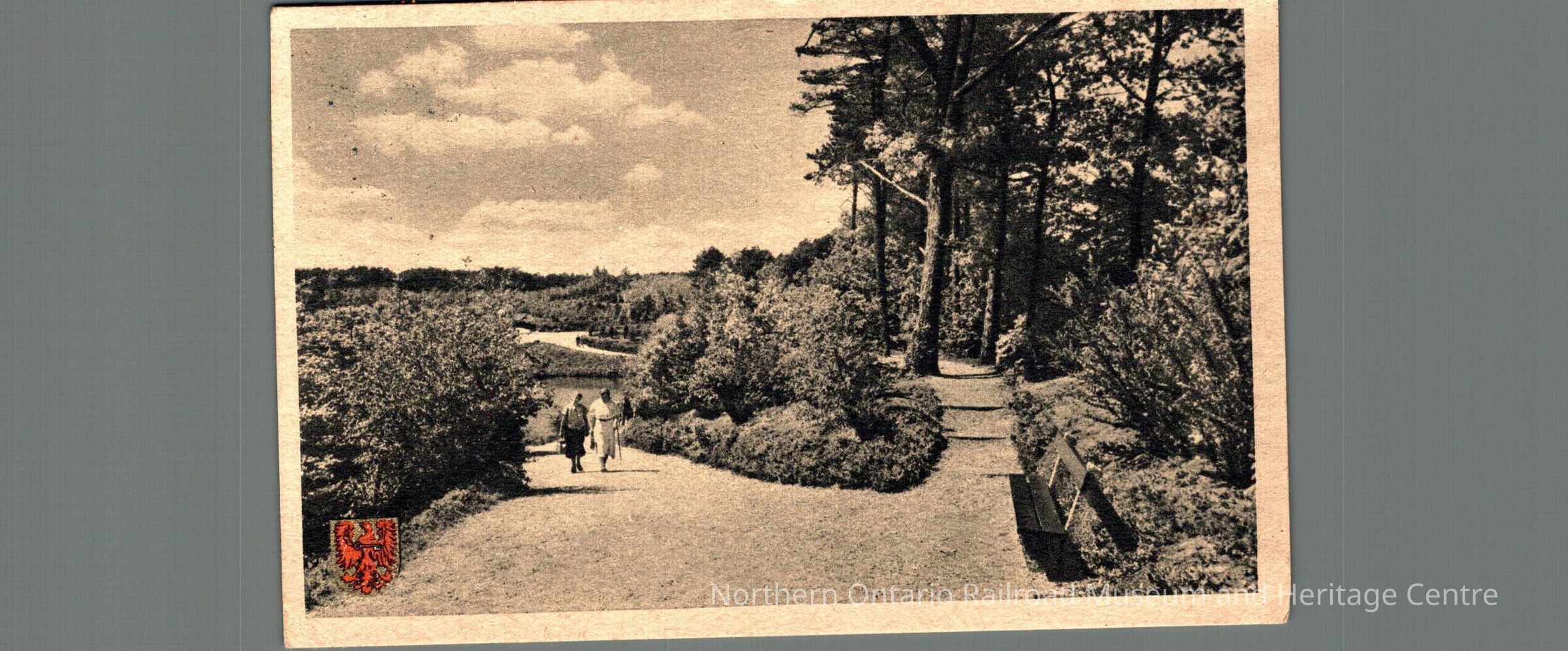 Postcard sent to Mrs D Carrise in Capreol from the Netherlands in 1947. Image on front appears to be a nature park or trail, "Berg en Bosch" in Apeldoorn.Context