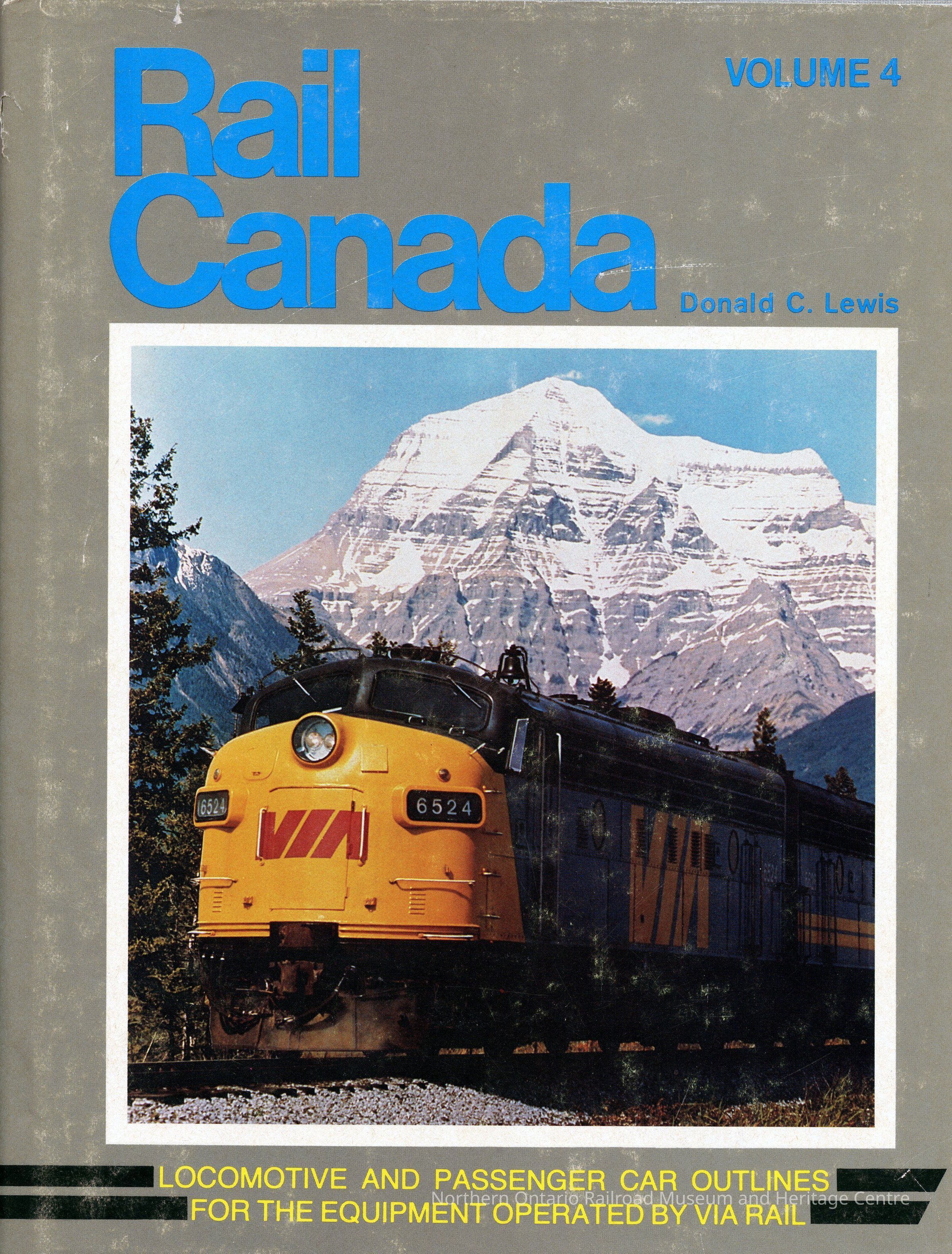 Book detailing the locomotive and passenger car outlines for VIA rail equipment. Contains a history of VIA, diagrams, painting notes,typical train consists, passenger car outline drawings, photographs, maps, and a roster section.