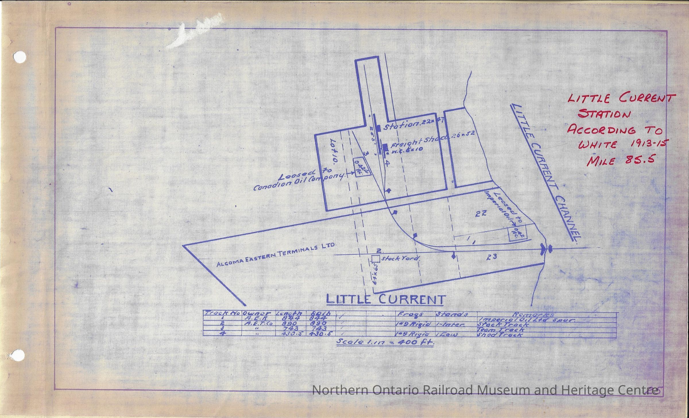 "Little Current Station according to White's Altitudes 1913-15 mile 85.5"Other Names and Numbers