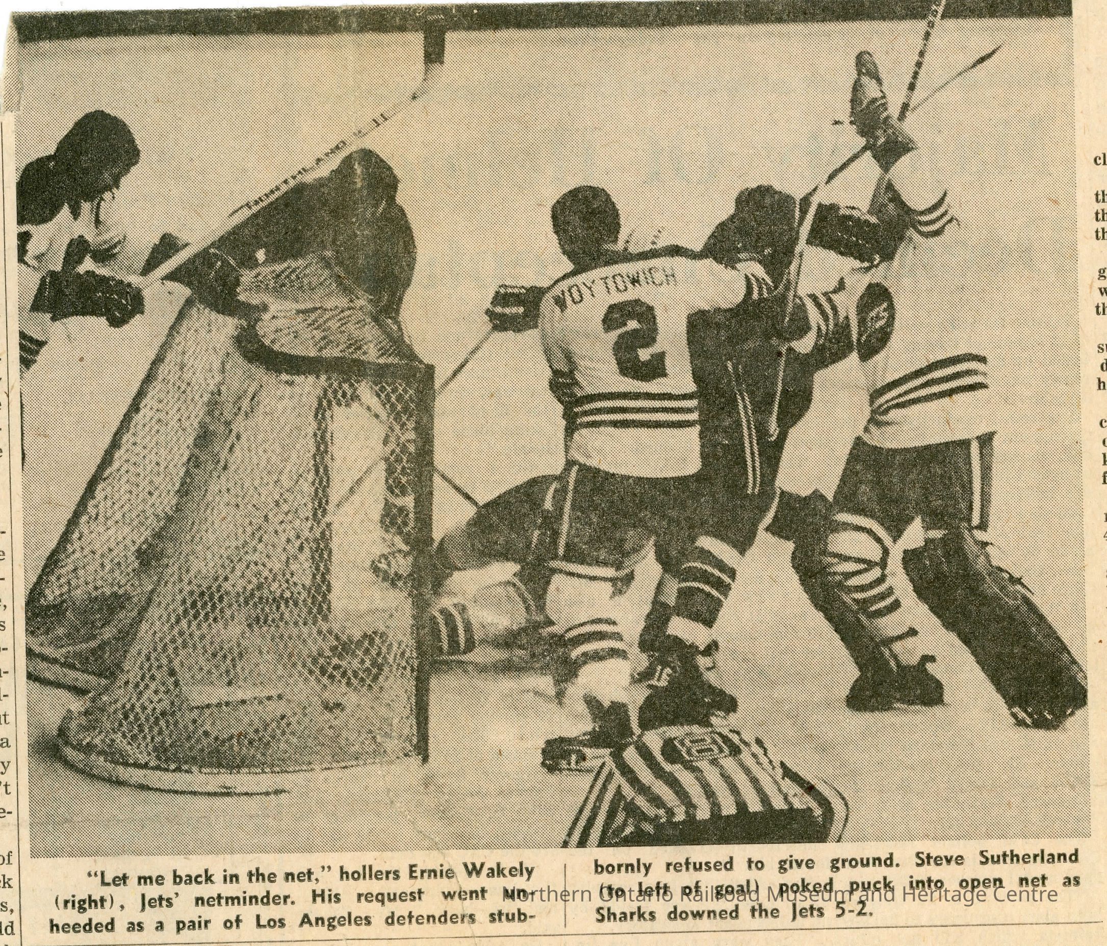 Ray Thomas as referee in Los Angeles Sharks vs. Winnipeg Jets game in Winnipeg Free Press Newspaper, December 1, 1973 (pg 69)Collection