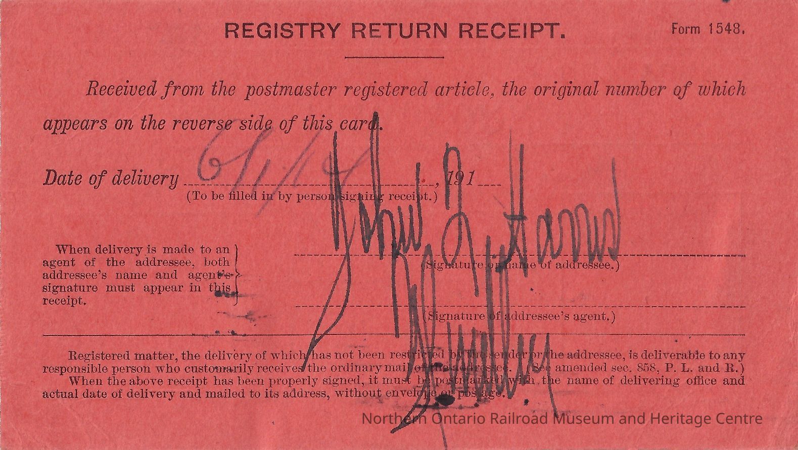 This registry return receipt is in excellent condition.Created By