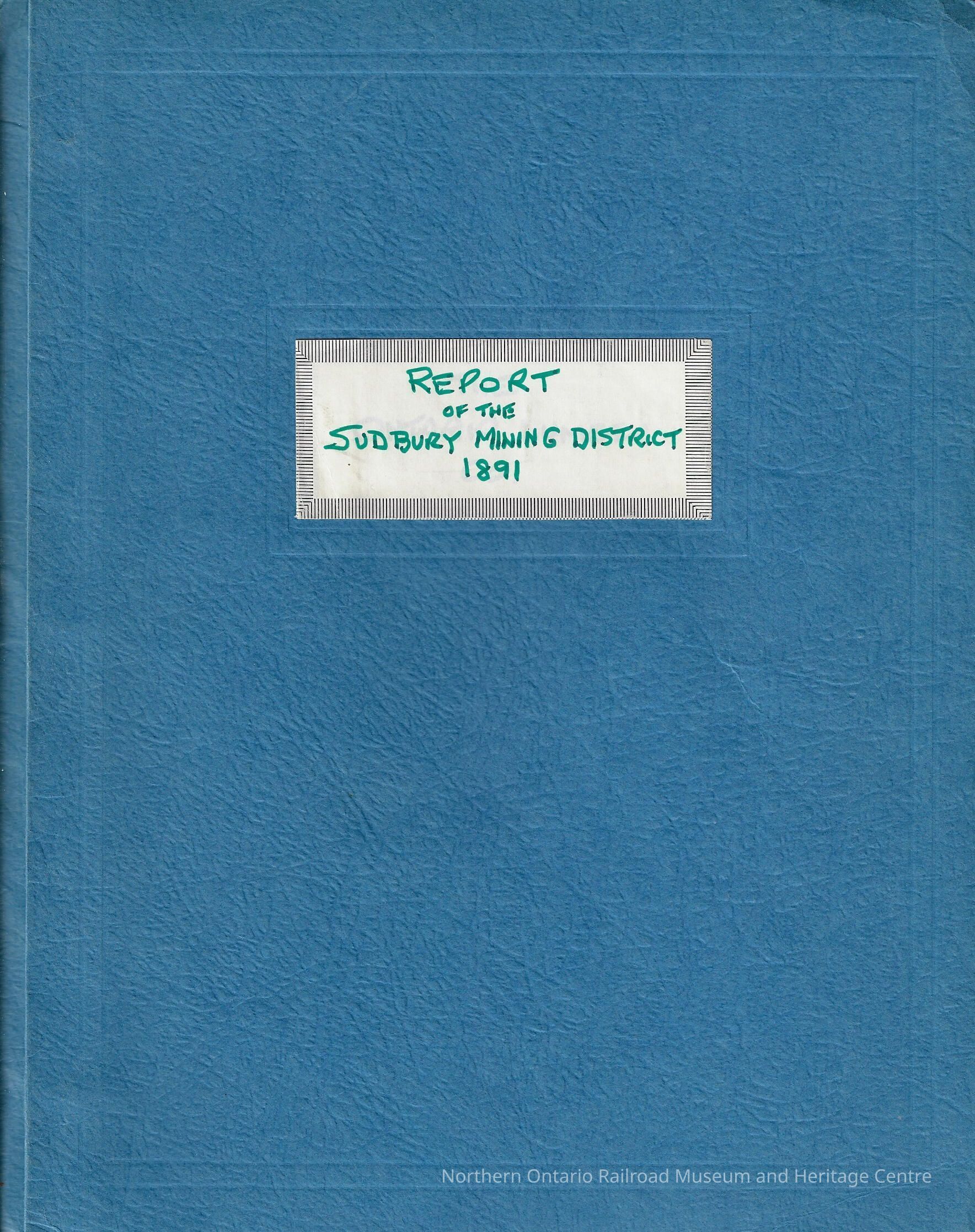 Book, report of the Sudbury Mining District as of the year 1891, published by the Geological Survey Department.Context