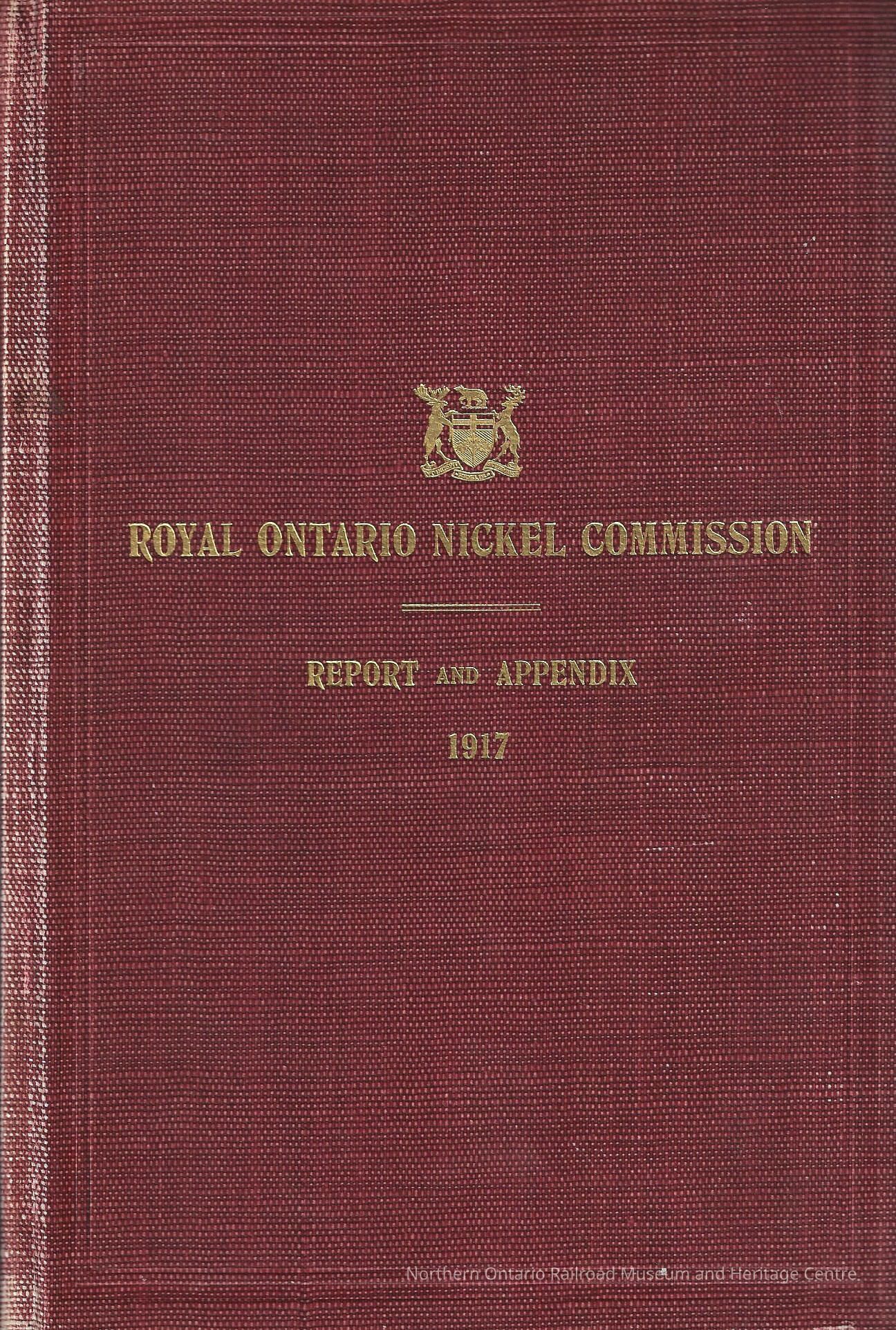 Book, report of the Royal Ontario Nickel Commission in the year 1917.Context