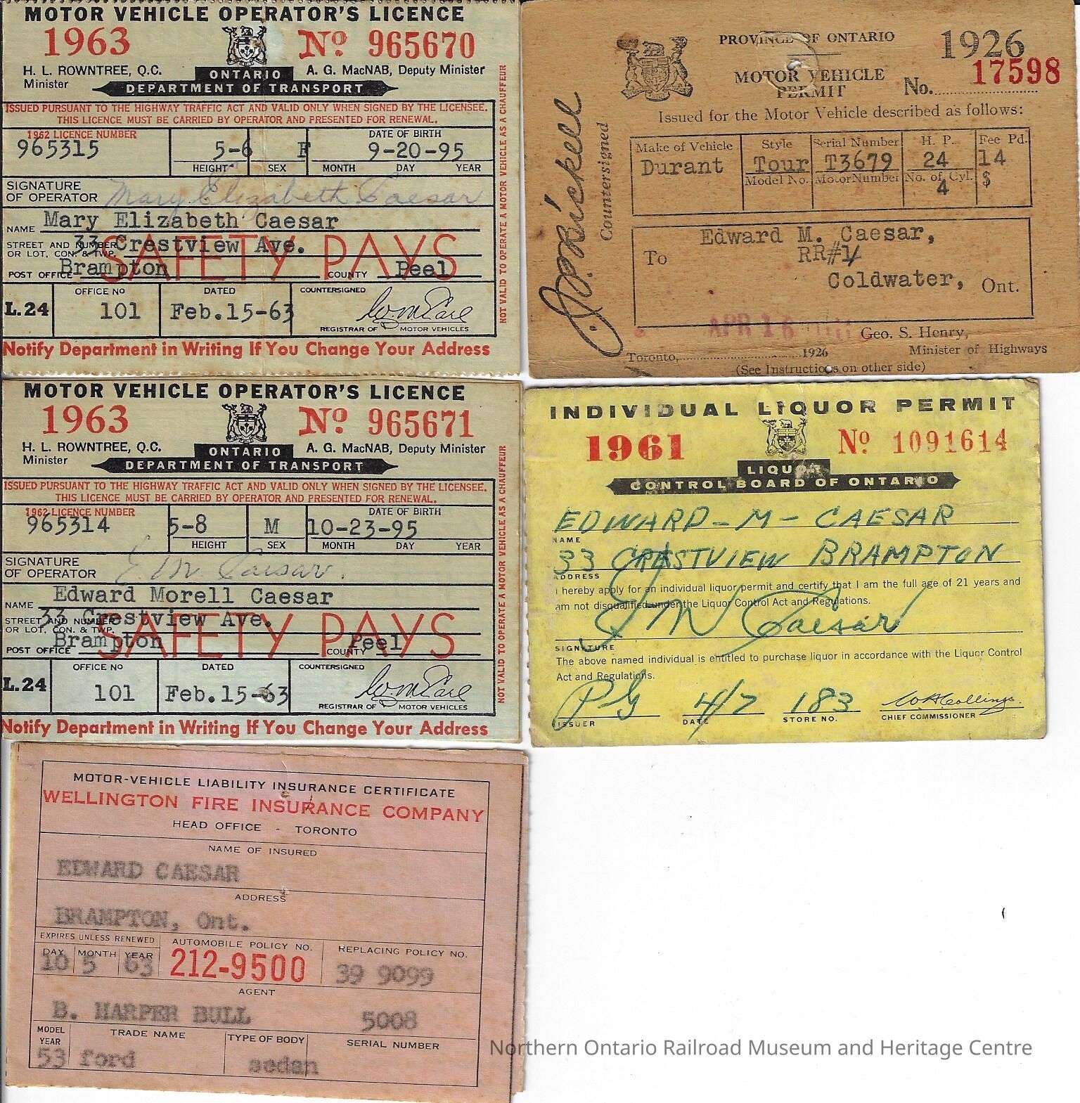 2) License # 965315, Height: 5-6, Sex: F, Date of birth: 9-20-95, Signature of operator: Mary Elizabeth Caesar, Name: Mary Elizabeth Caesar, Street and number: 33 Crestview Ave, Post Office: Brampton, County: Peel, Office No.: 101, Dated: Feb. 15-63