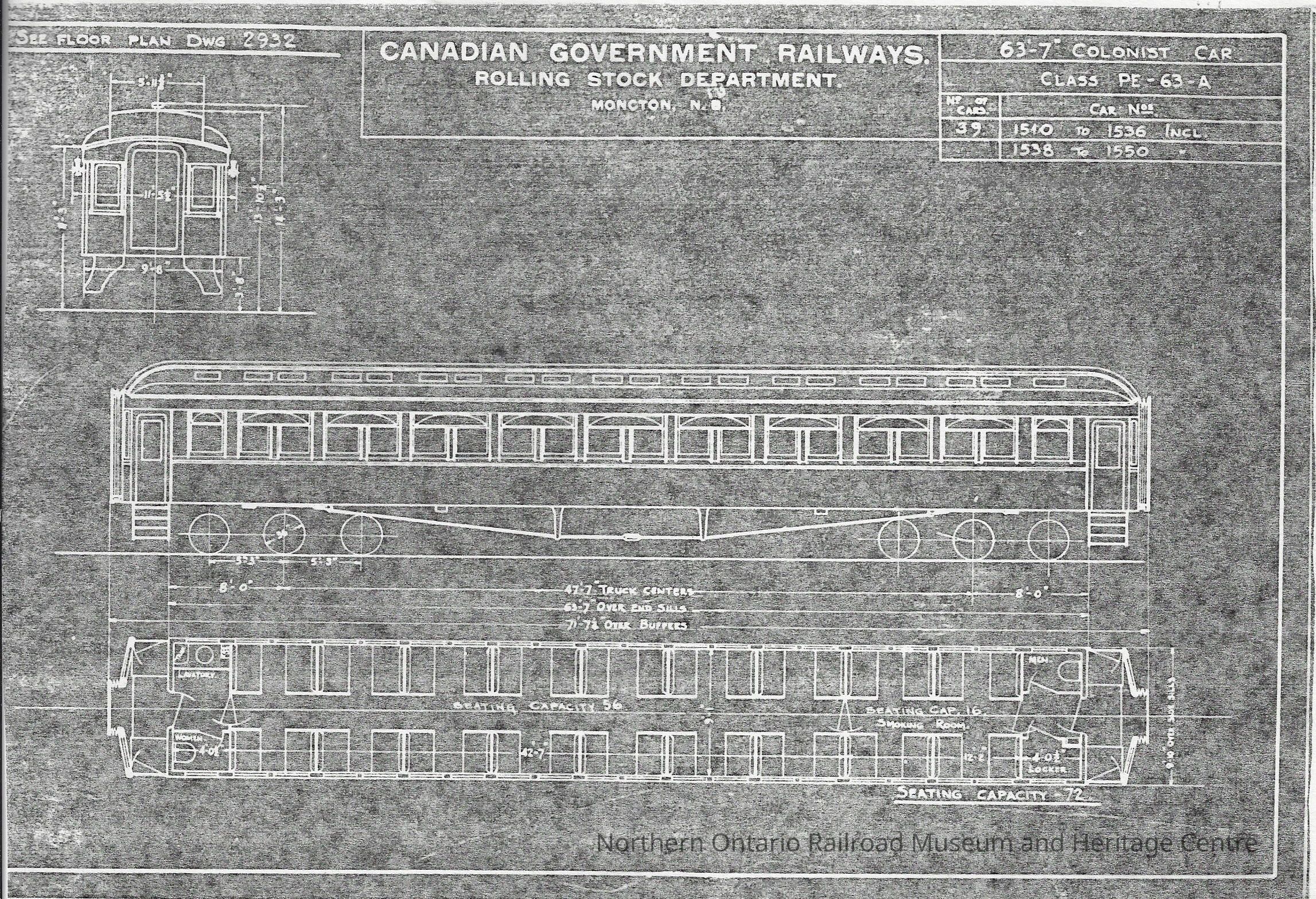 Copies of the original documents, copies of the original blueprints for the Canadian Government Railway's colonist cars.