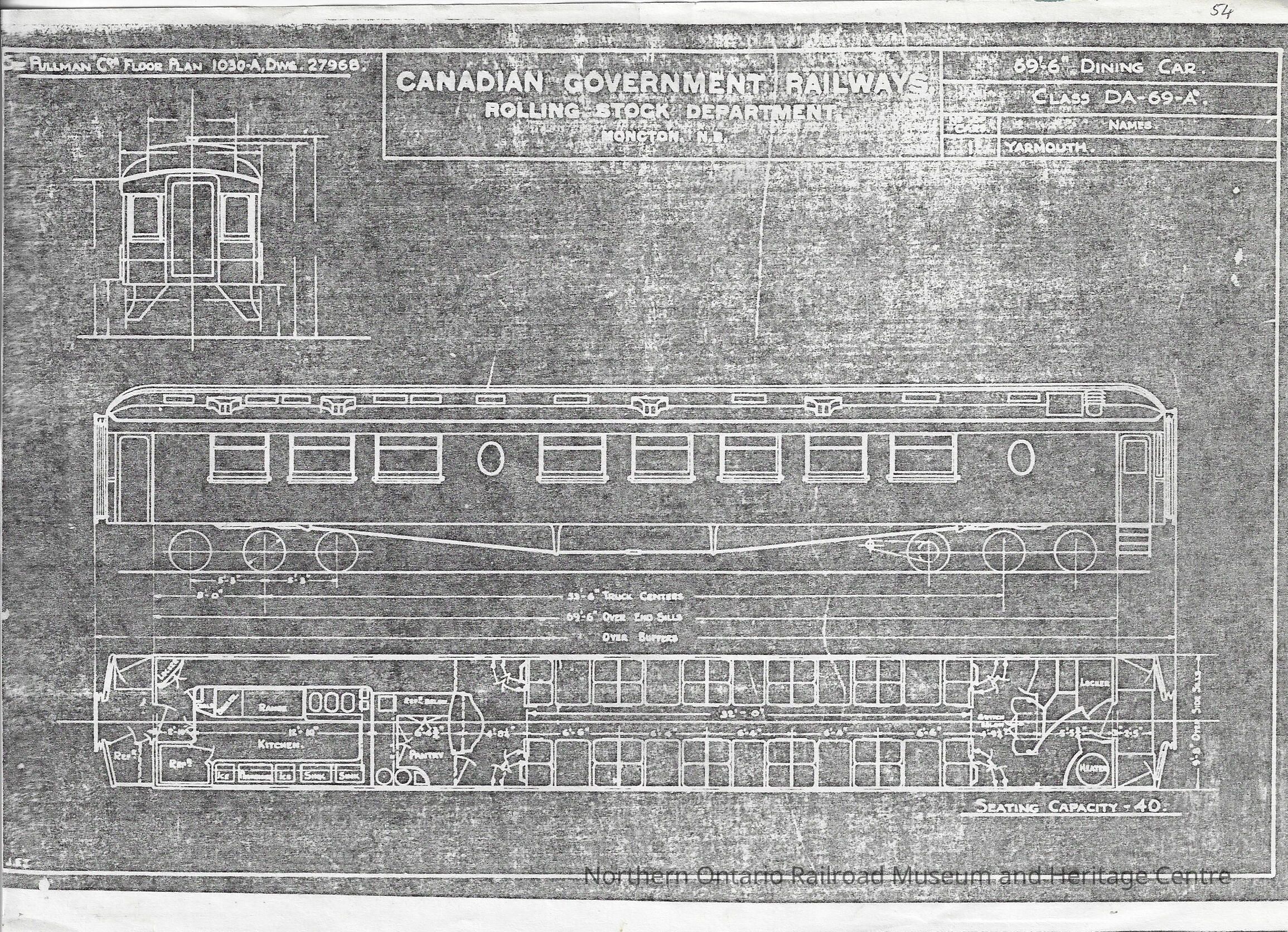 Copies of the original documents, copies of the original blueprints for the Canadian Government Railway's dining cars.