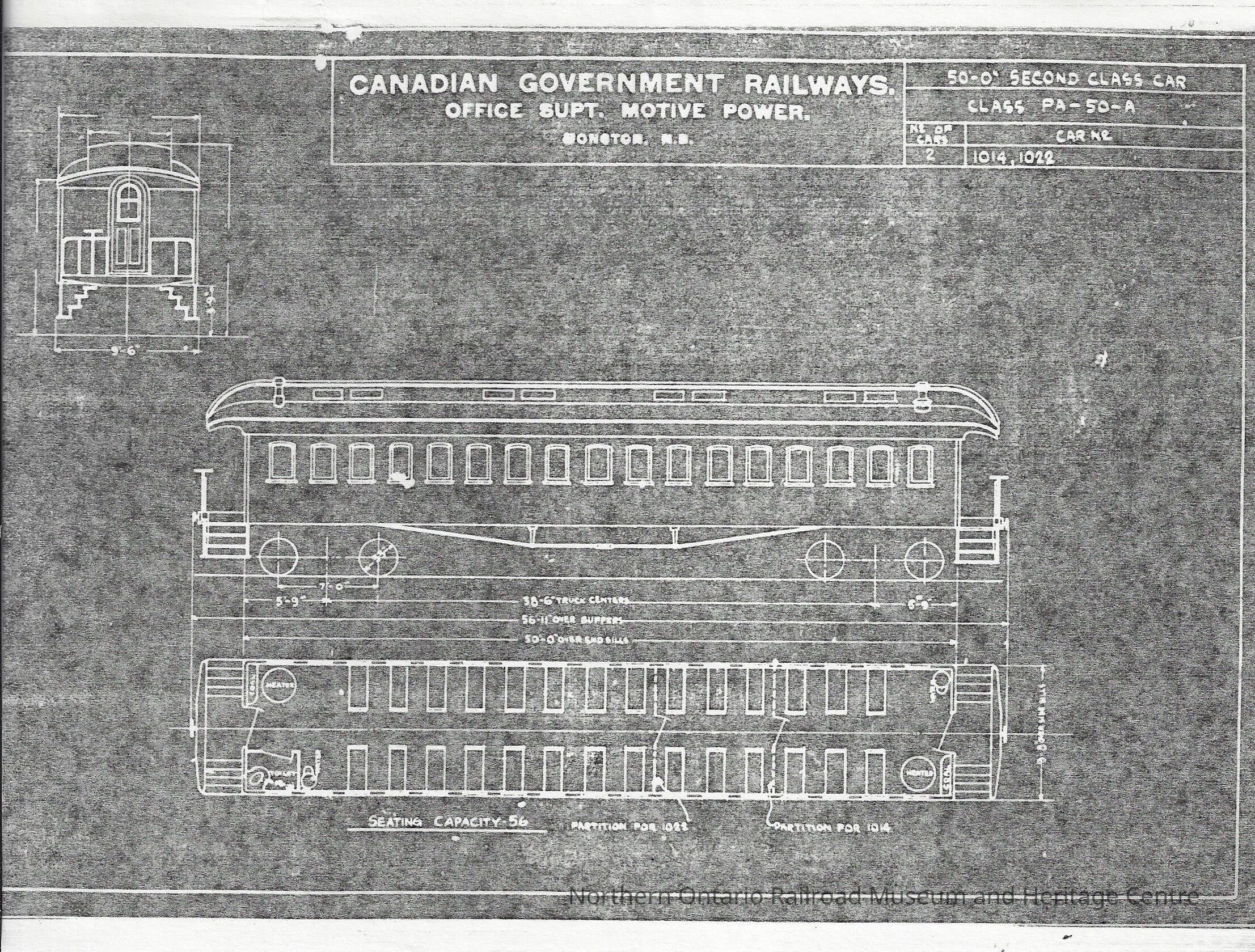 Copies of the original documents, copies of the original blueprints for the Canadian Government Railway's second class cars.