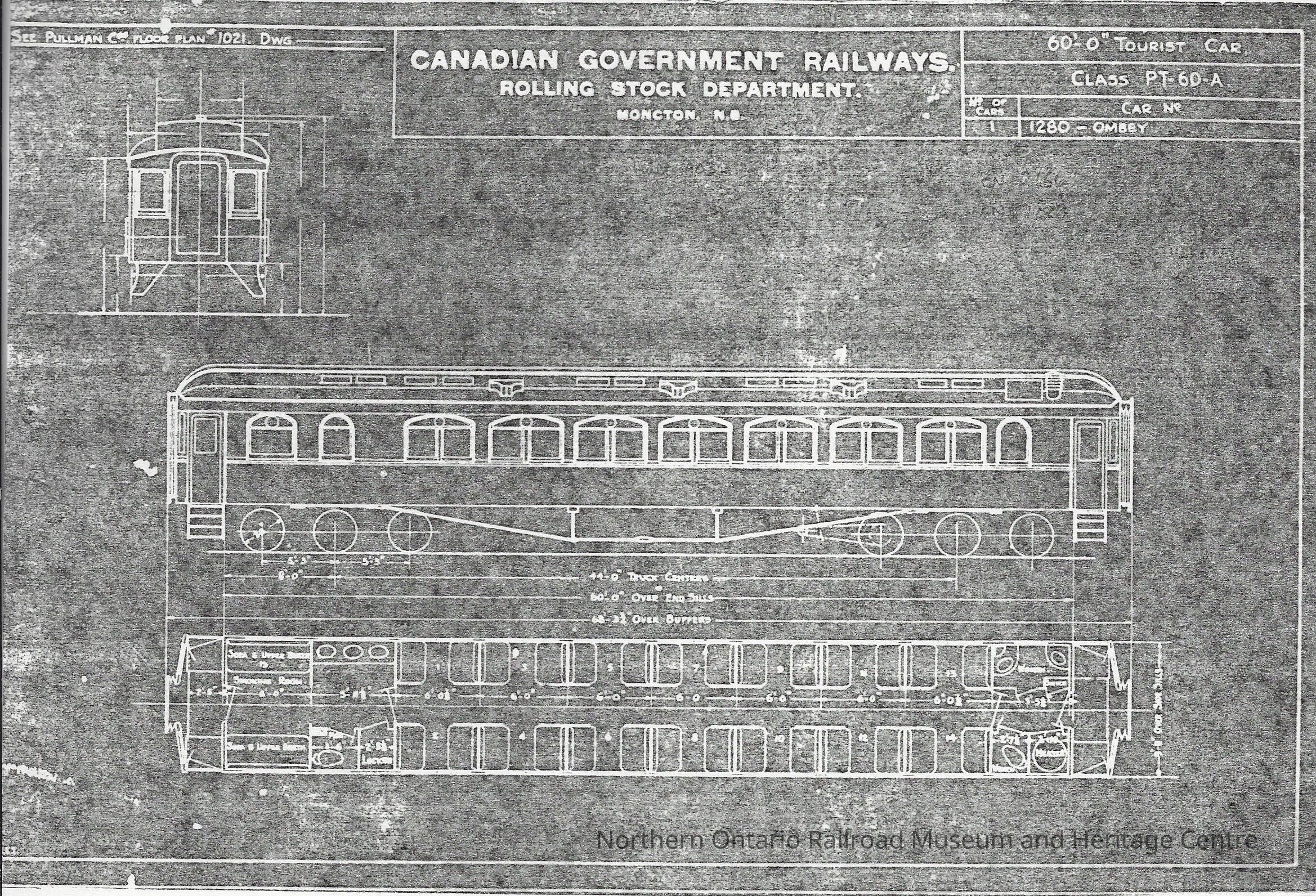 Copies of the original documents, copies of the original blueprints for the Canadian Government Railway's tourist cars.