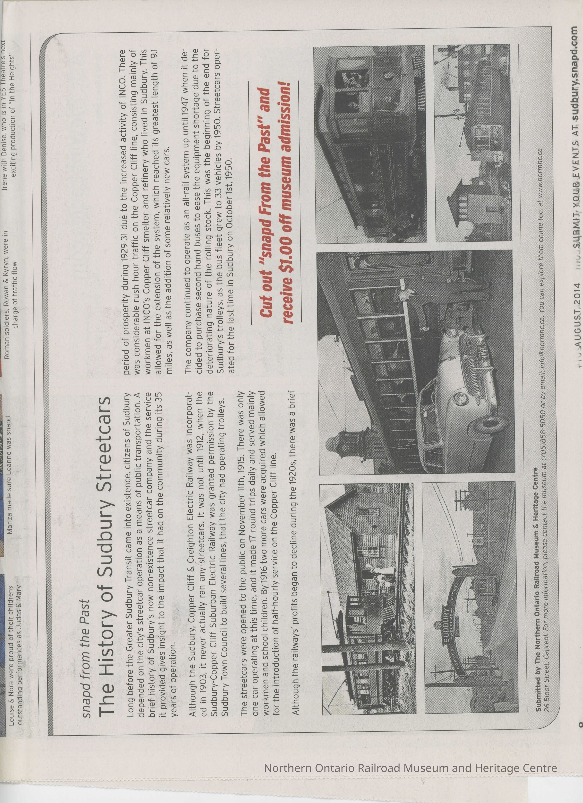 Snapd Sudbury August 2014 article, NORMHC article " Snapd from the past: The History of Sudbury Streetcars" on page 8Collection