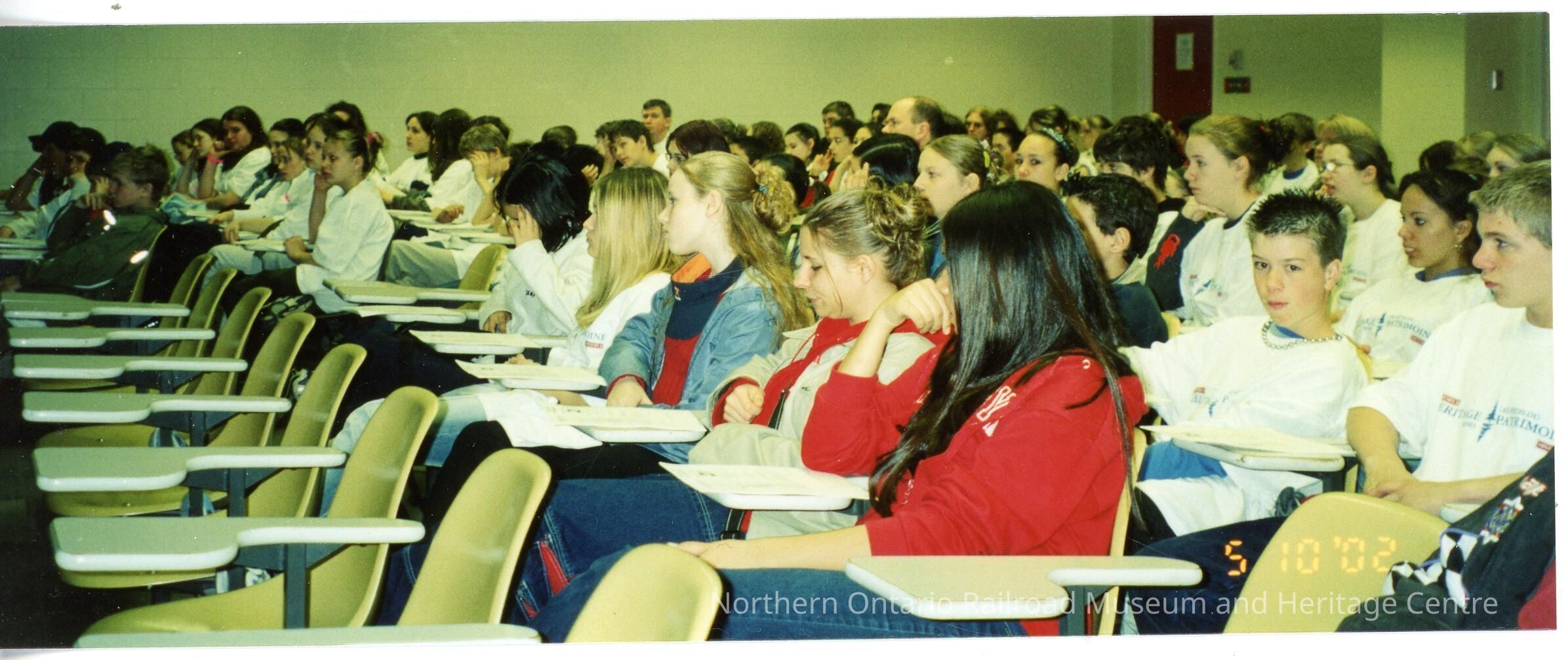 Students watching presentation at the Laurentian University Heritage Fair, 10 May 2002Collection