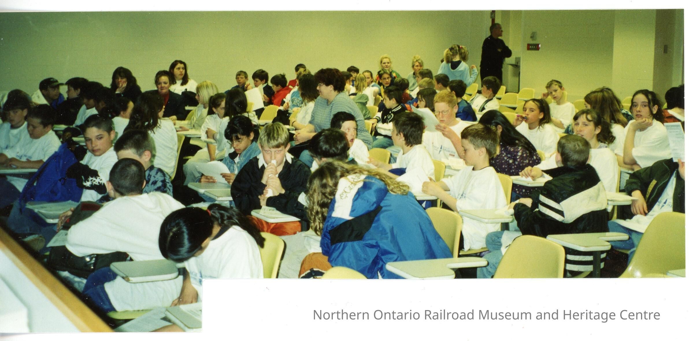Students watching presentation at the Laurentian University Heritage Fair, 10 May 2002Description