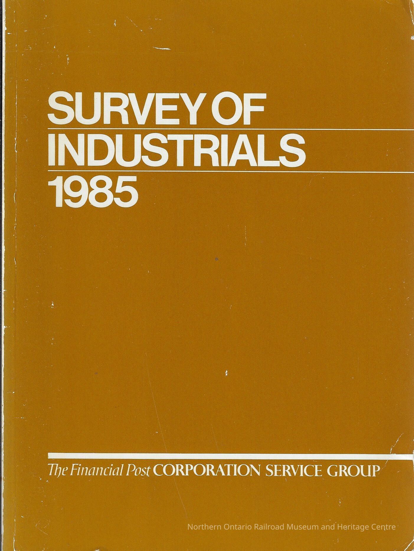 The book was published by the Financial Post Corporation Service Group and it compiles a survey of all of the industrials in Canada as of 1985. It lists all of the corporations in an alphabetical order under a general index.