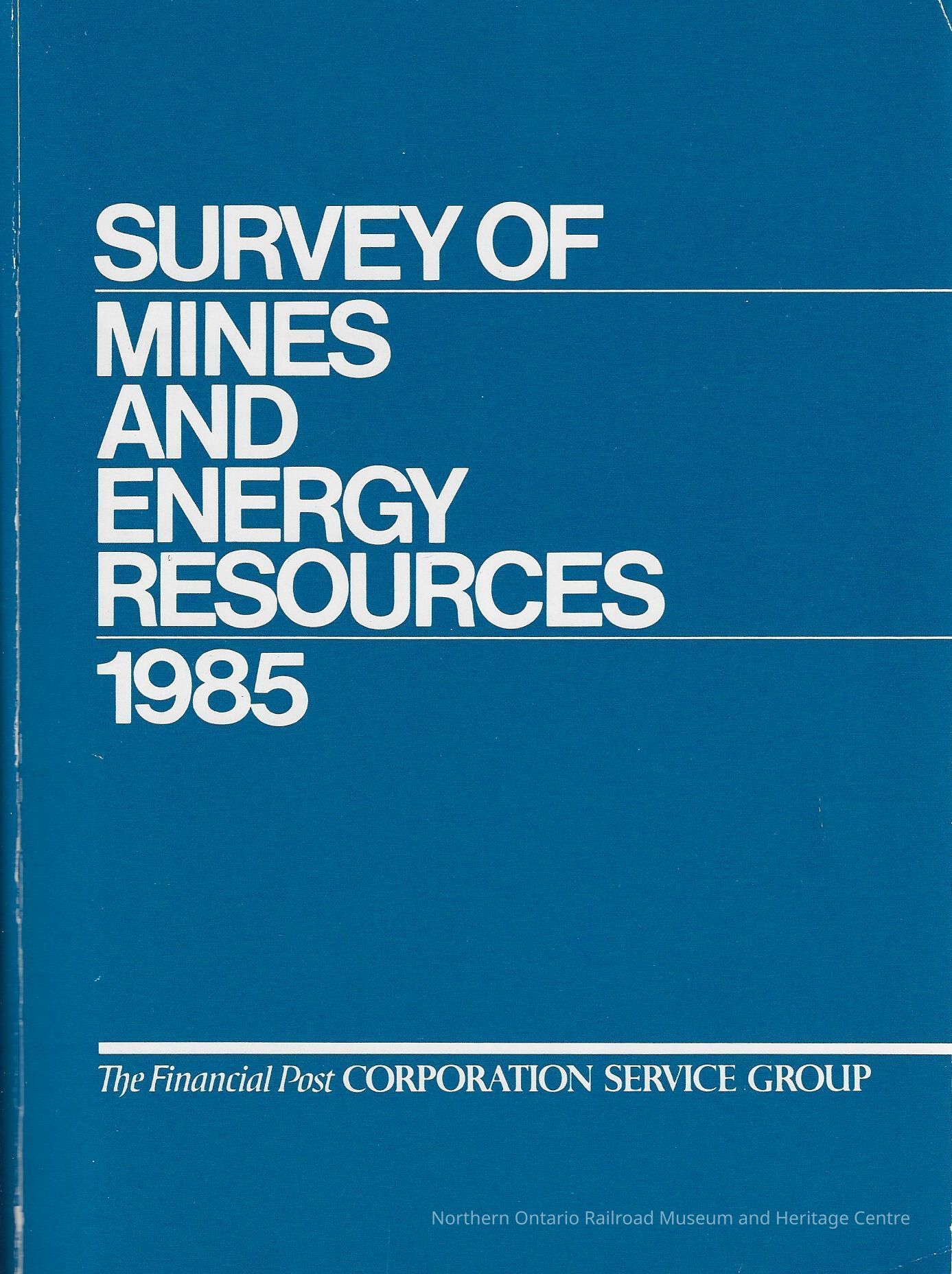 The book was published by the Financial Post Corporation Service Group and it compiles a survey of all of the mining companies, mines, and energy resources and energy resource companies in Canada as of 1985. It lists all of the corporations in an alphabetical order under a general index.