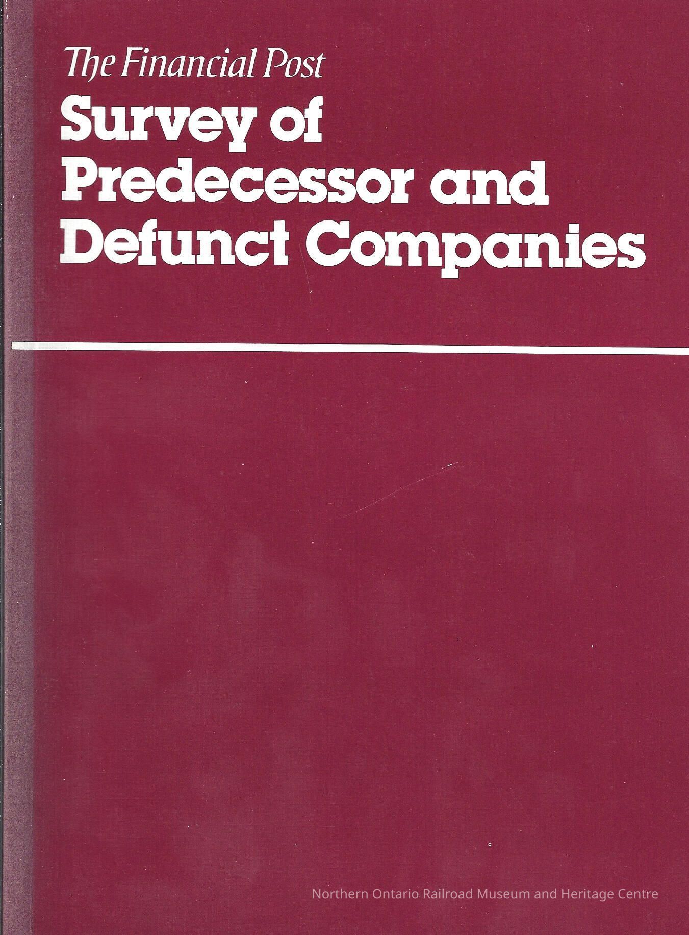 The book was published by the Financial Post Corporation Service Group and it compiles a survey of all of the predecessor and defunct companies in Canada as of 1981. It lists all of the corporations in an alphabetical order under a general index.Collection