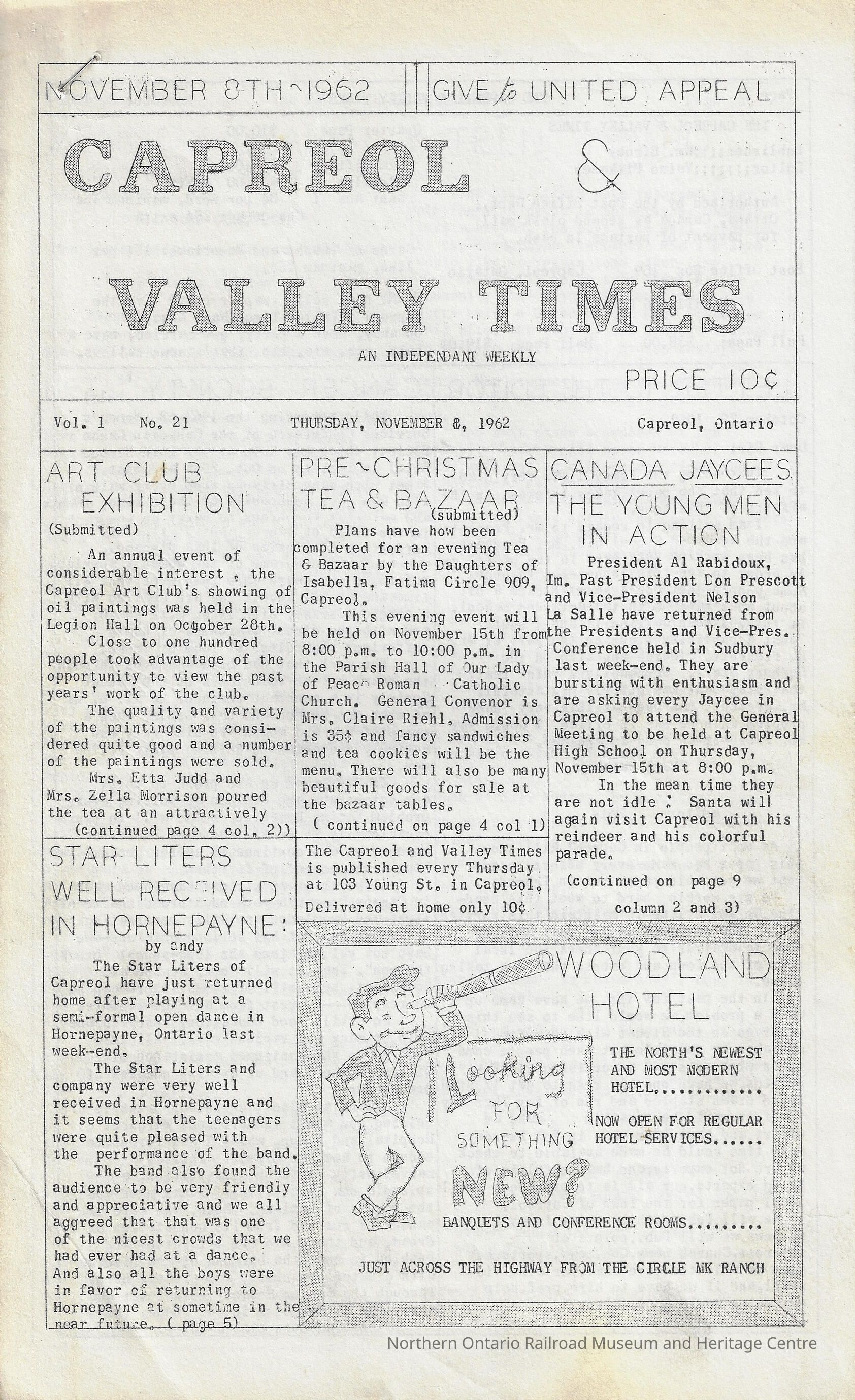 The Capreol and Valley Times: Vol 1 (21) November 8, 1962Entry/Object ID
