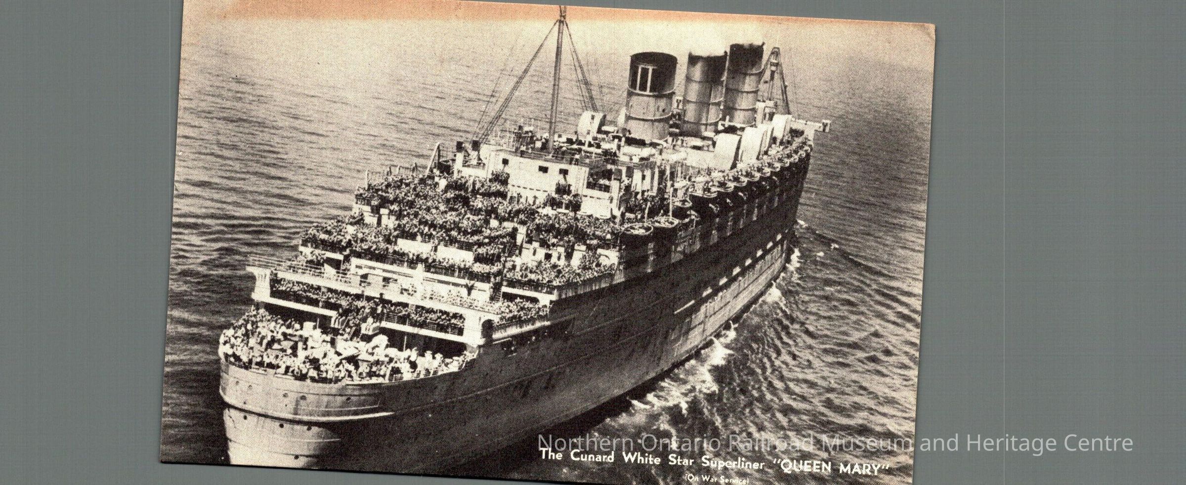 Blank postcard of the "Queen Mary" superliner, used to transport allied troops during the Second World War. After the war it remained in service until 1967. It also transported war brides from the Netherlands.Context