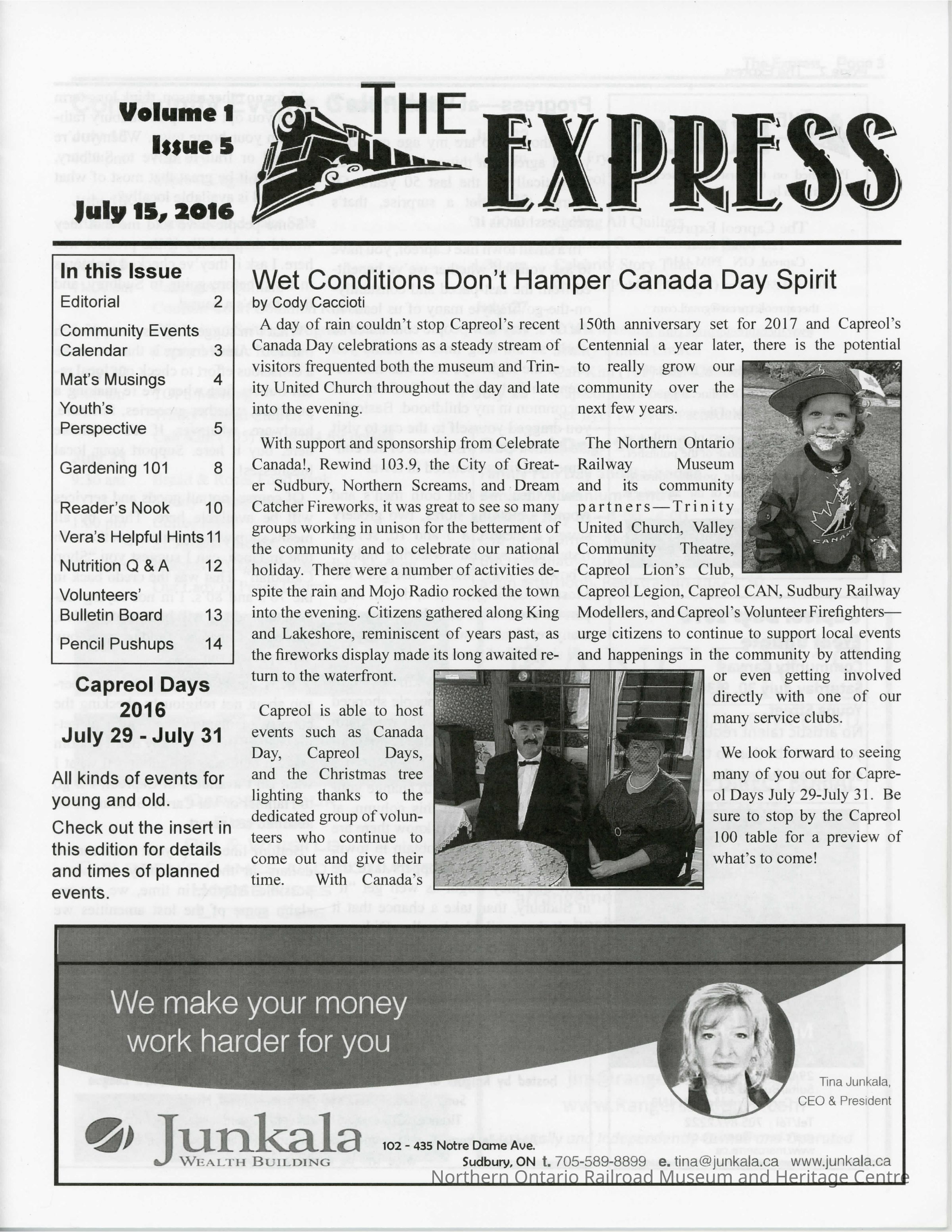 The Express Vol 1 Iss 5 "Wet Conditions Don't Hamper Canada Day Spirit"Description