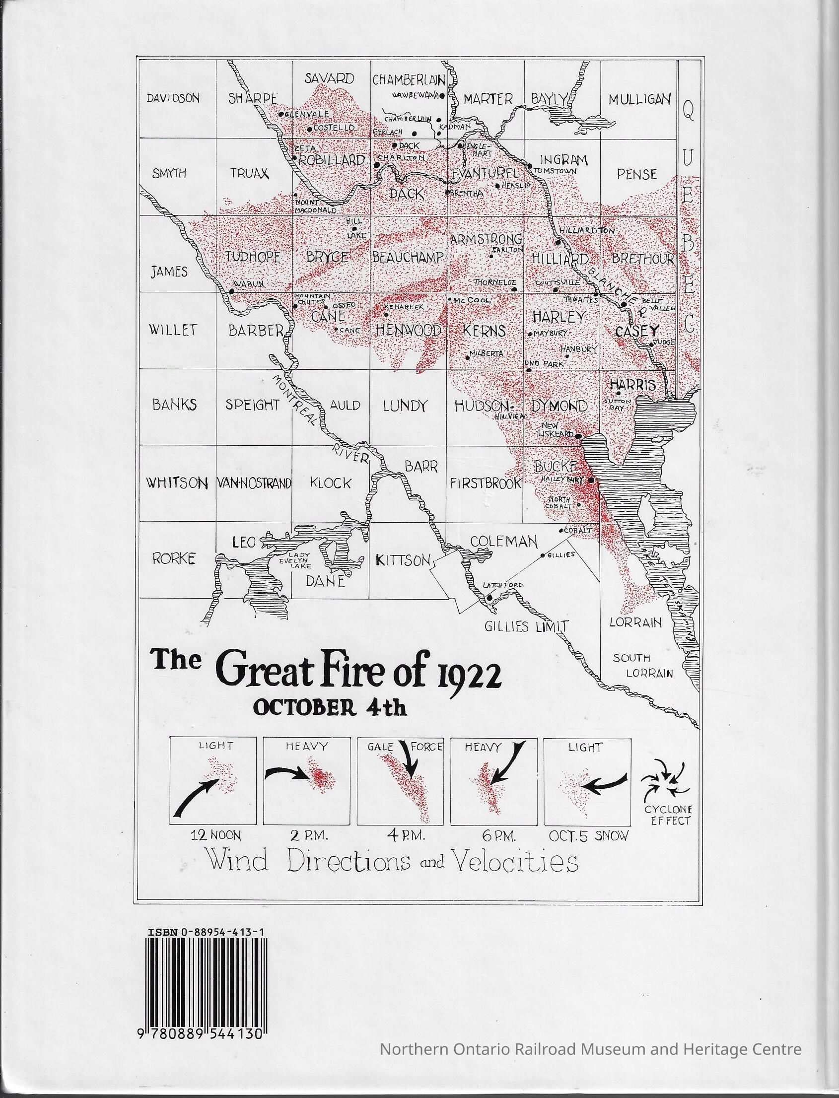 Haileybury: Brewster street, Browning street, Champlain street, Lake shore road, Latchford street, Niven street, Seton street, Amwell street, Blackwall street, Broadway street, Cecil street, Convent, Ferguson ave, Georgina ave, Marcella street, Meridian ave, Albert street Elliot street, the hospital, Lawlor street, Rorke ave, View Street, Argentite, Cobalt, Giroux Lake, North Colbalt, the aftermath: causes of fire, first news reports on 1922 fire, poem by Mary Sparling Muscroft, heroes to the rescue, causalities, 1922 letters and telegrams, poem by Dan Lavigne, relief efforts, streetcars, rebuilding, firefighting, poem by Hartley Houston, Unveiling of Plaque.Collection