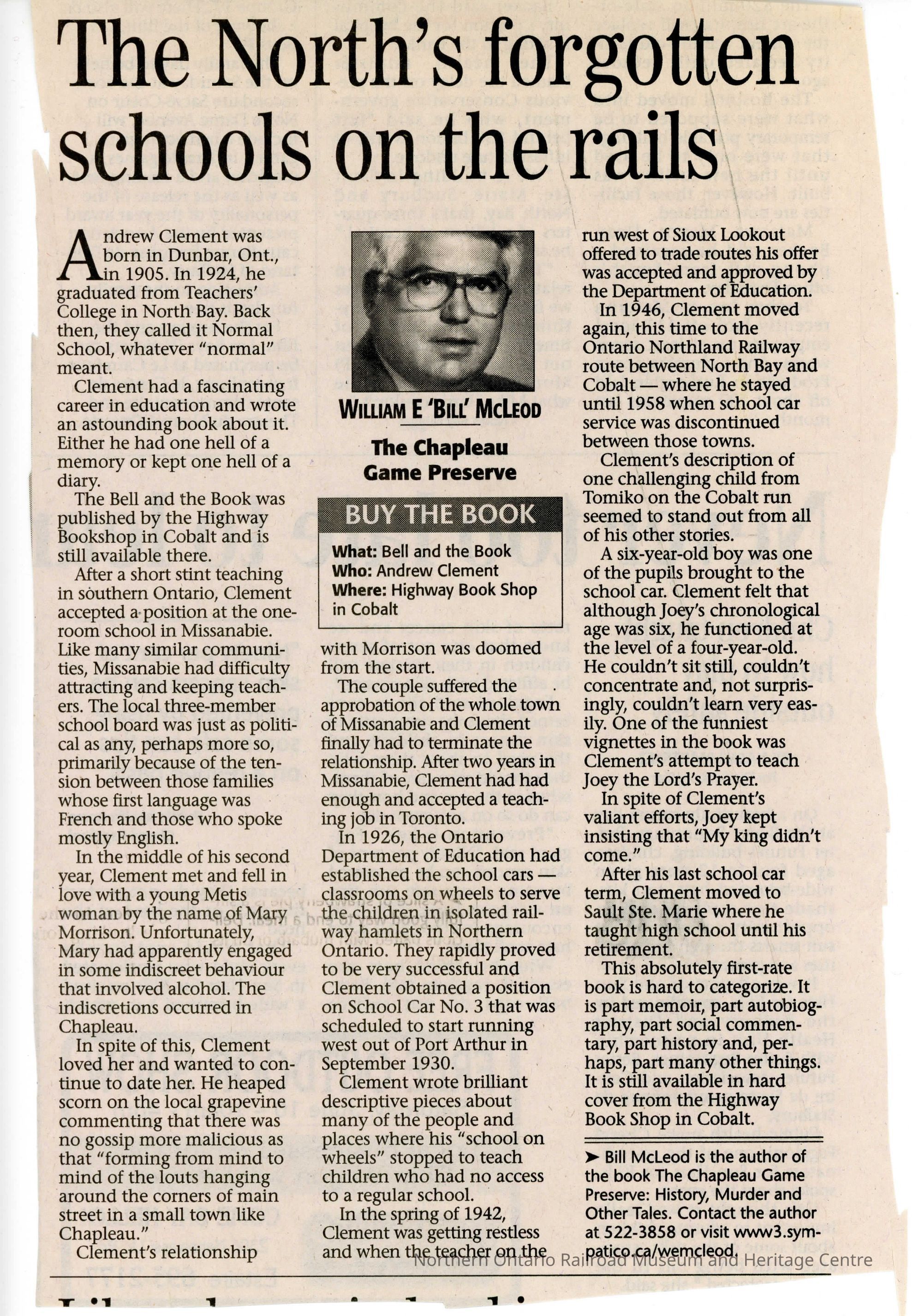 "The North's Forgotten schools on rails" in The Sudbury StarDescription
