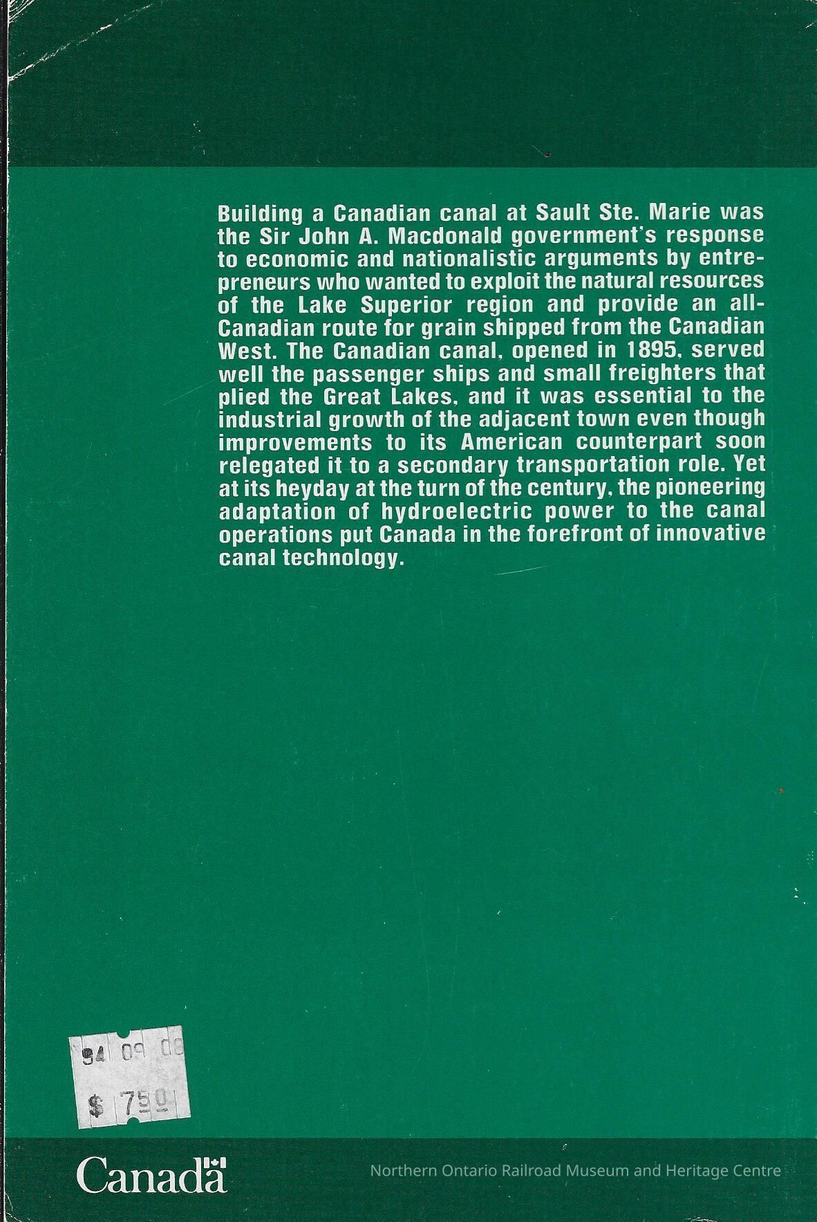 Book describing the history of the development of the Sault Ste. Marie Canal in Sault Ste. Marie, Ontario.Context
