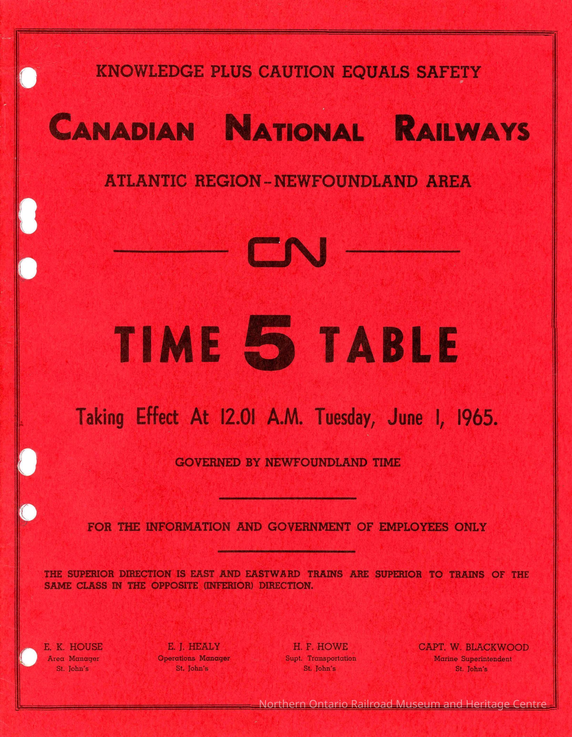 Timetable, Atlantic Region - Newfoundland Area 5, June 1, 1965.Collection