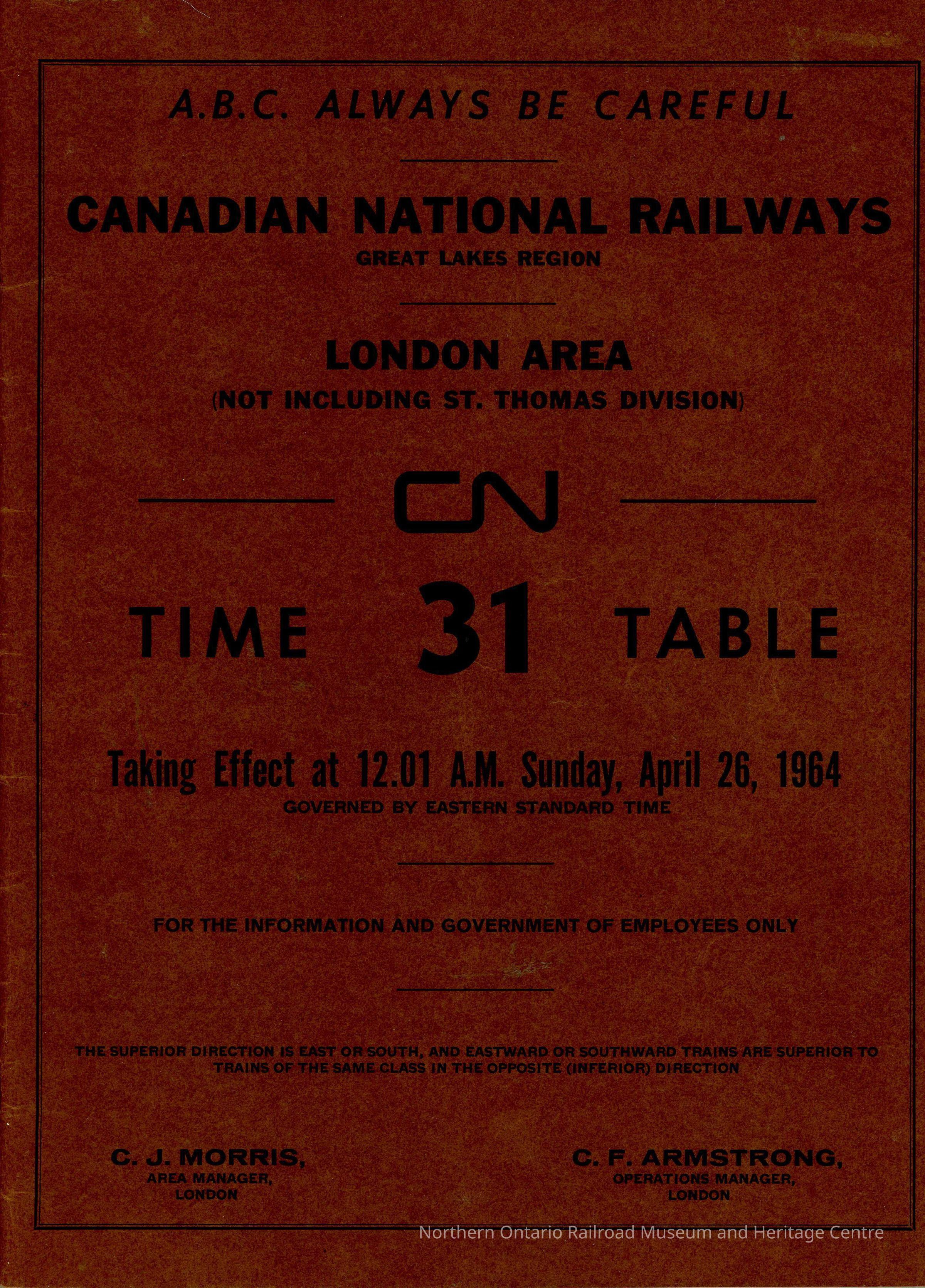 Timetable, CN London Area 31, April 26th 1964Collection