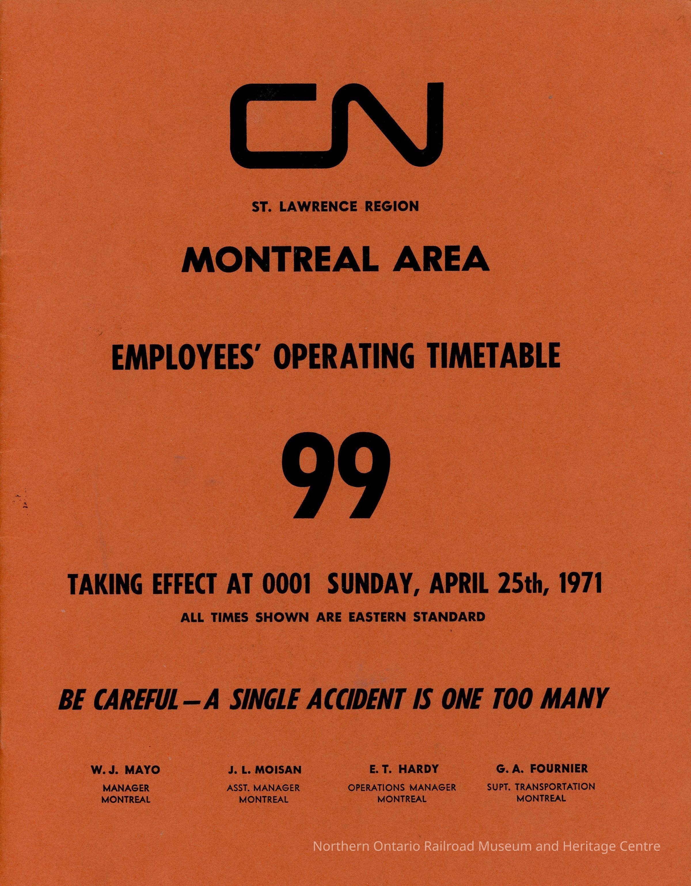 Timetable, CN Montreal Area Timetable 99. April 25th 1971.Collection