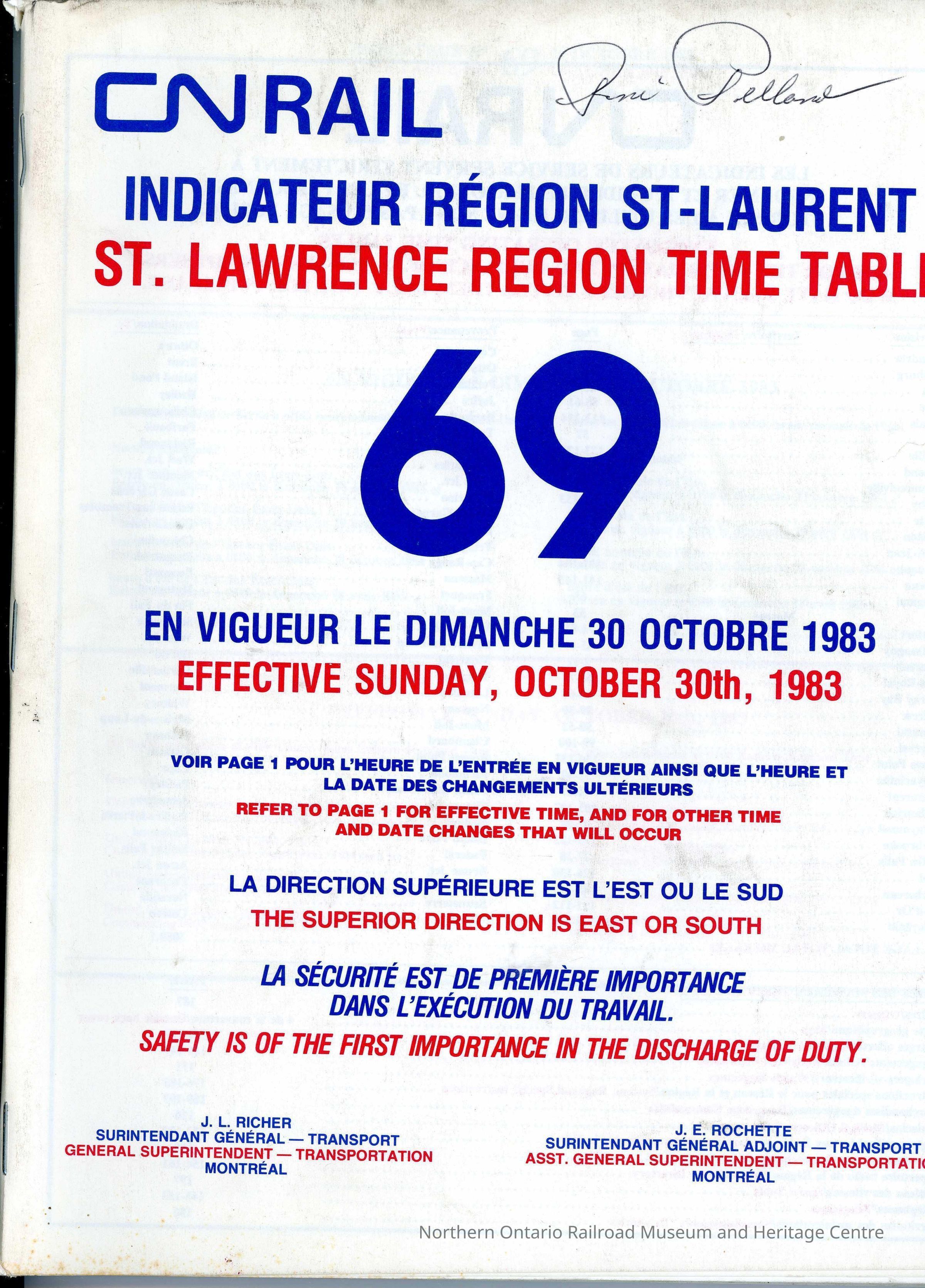 Timetable, CN St. Lawrence Region 69, October 30th 1983Collection