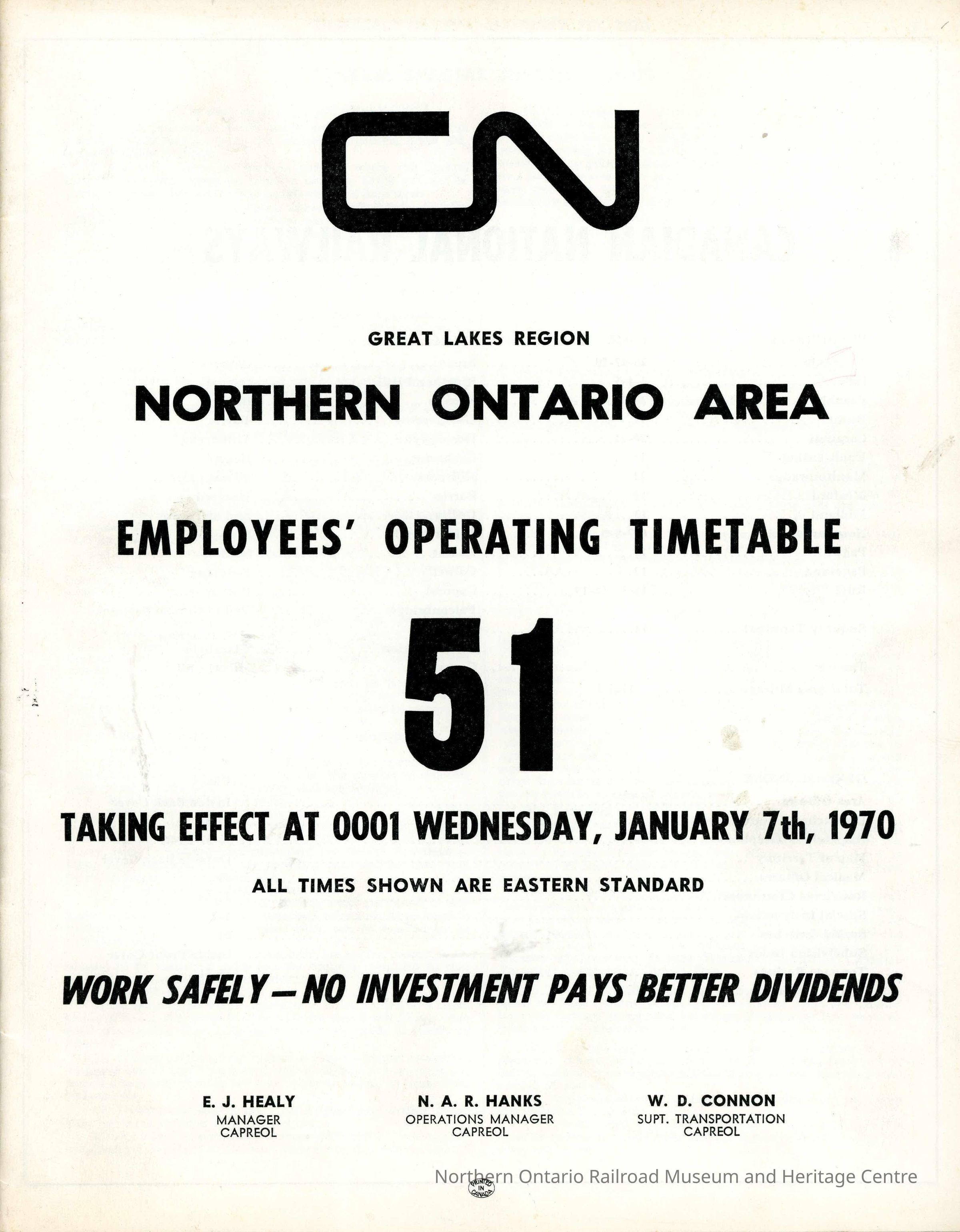 Timetable, CNR Northern Ontario 51, January 7th 1970Collection