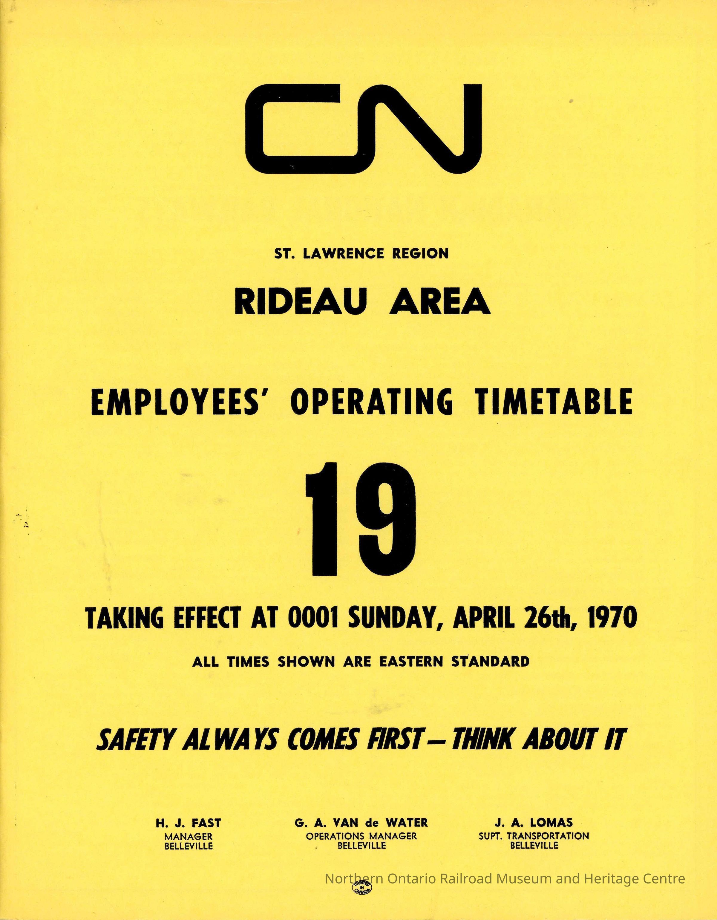 Timetable, CNR Rideau Area 19, April 26th 1970Collection