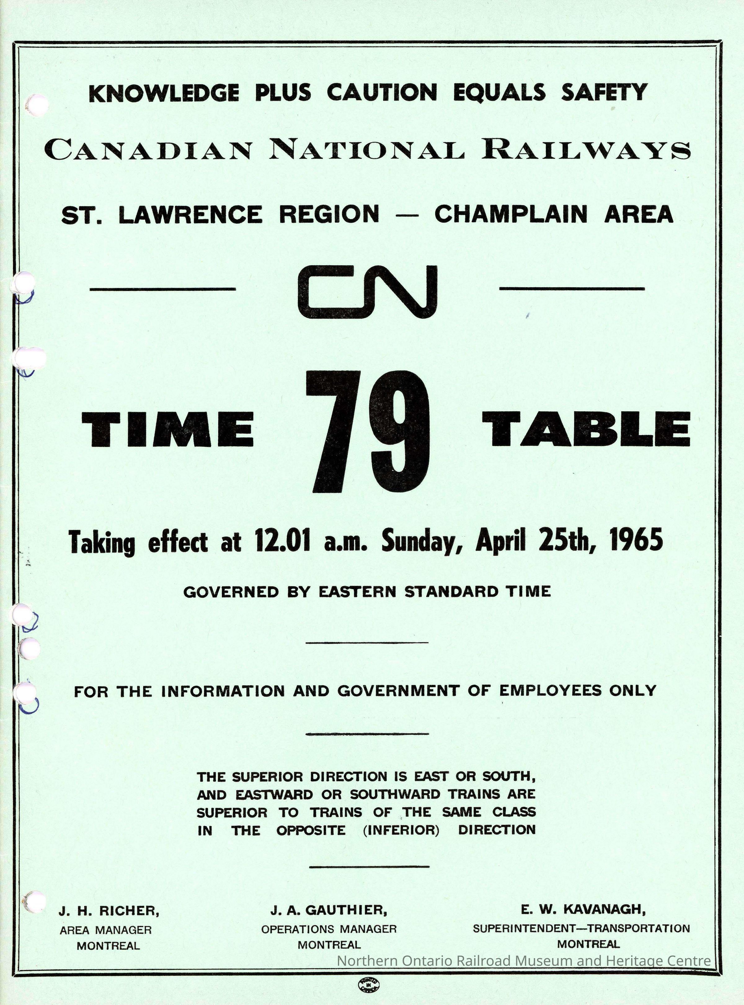 Timetable, CNR St. Lawrence Region - Champlain Area 79, April 25th 2965Collection
