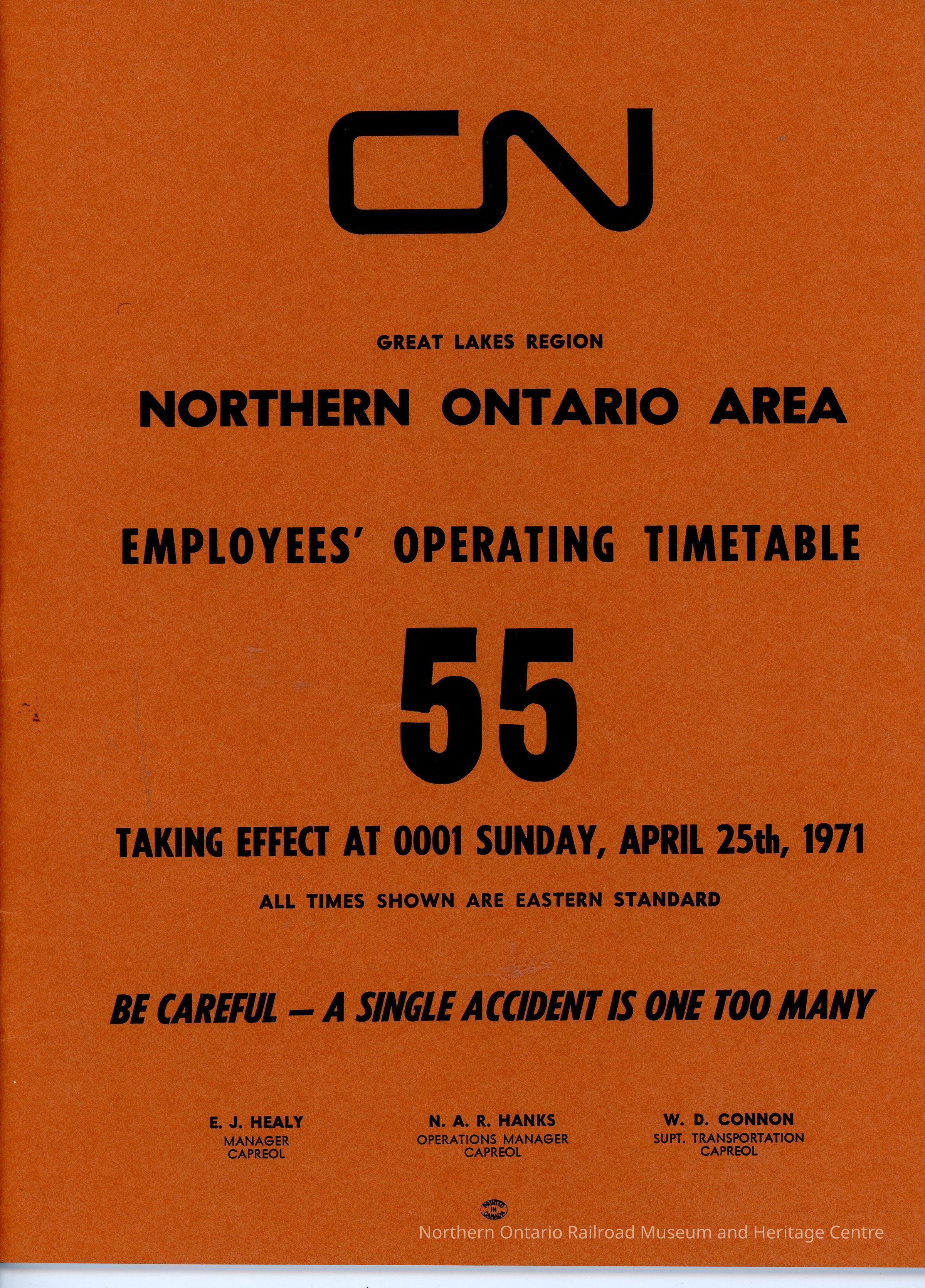 Timetable, Northern Ontario 55, April 25th 1971Collection