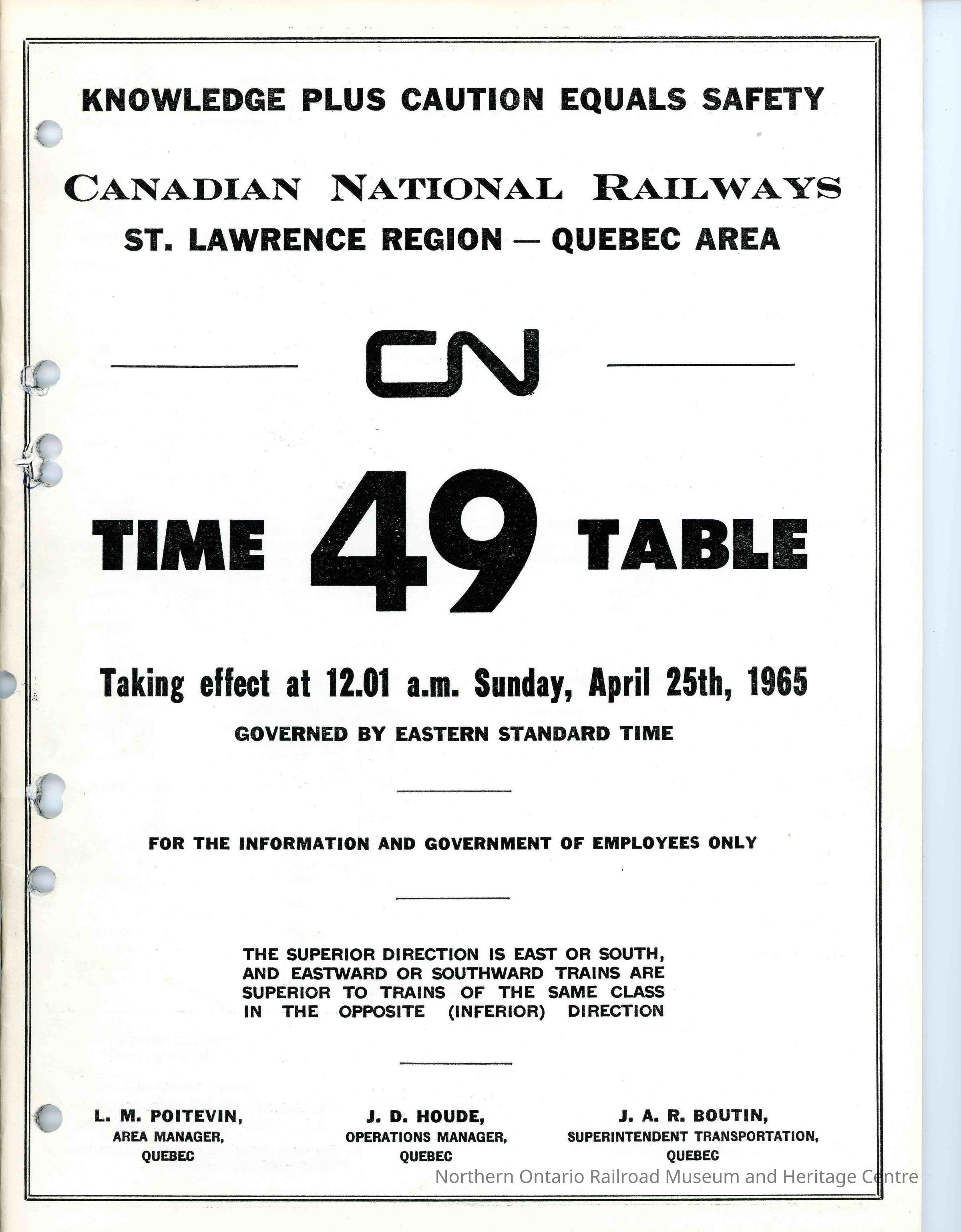 Timetable, Prairie Region - Assiniboine Area 49, April 25th 1965Collection