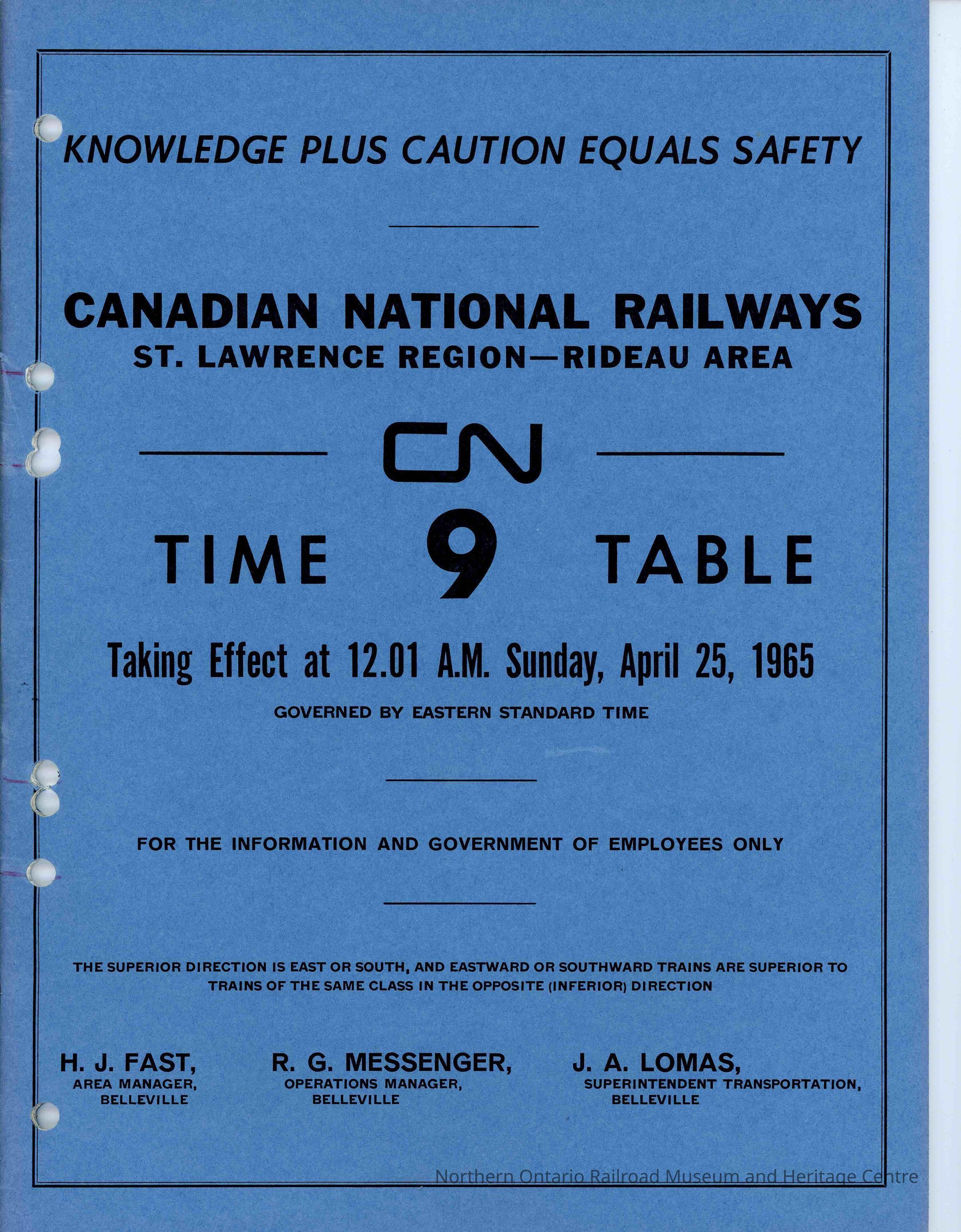 Timetable, St. Lawrence Region - Rideau Area, April 25 1965Collection