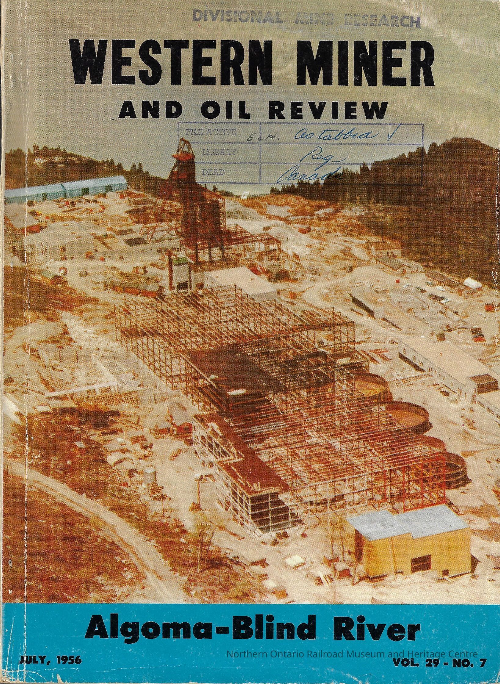 Book, Western Miner and Oil Review, volume 29, number 7 published in July of 1956, focusing on the Algoma-Blind River area.Context